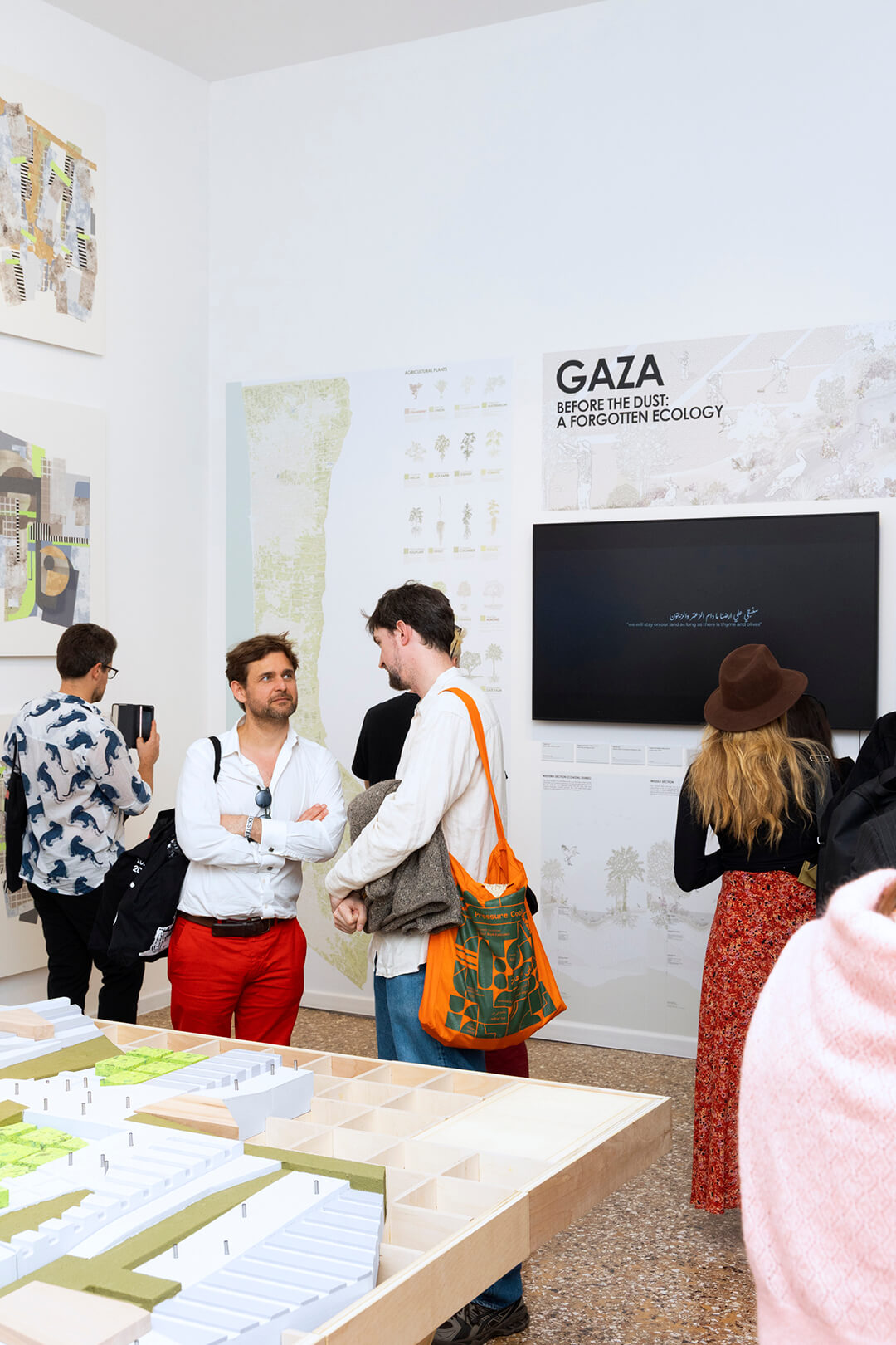 Last year at the Venice Arts Biennale, multiple pavilions and collateral events addressed Israel’s ongoing genocide of the Palestinian people; there was even a protest during the Vernissage. This year, the Architecture Biennale has already been criticised for its lack of engagement with the conflict, which is arguably one of the greatest architectural traumas in modern history. The Land Remembers at the Lebanese Pavilion catalogues Israel’s ecocide of their country using white phosphorus – one of the photographers involved in the pavilion was even murdered in the process. In Palazzo Mora, we find a response to this devastation. The project Roots of Hope confronts us with Israel’s violent destruction of Gaza, but also reminds us of the richness and beauty of the environment before it was reduced to rubble, with a map of the rich flora and fauna, plotting a probable path towards regrowth and rebirth, anchored in hope.