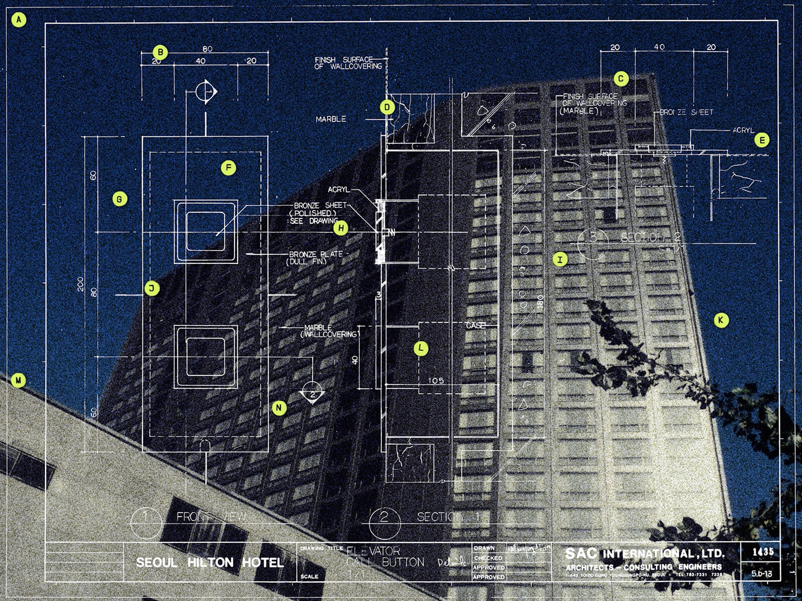 Speaking of the politics of national architecture, historian Sunil Khilnani describes mega-structures as objects of faith: “spectacular facades [...] upon which the nation watche[s] expectantly as the image of its future [is] projected”. The Autobiography of Hilton Seoul attends closely to the imbrication of the national project and the built environment, treating the hotel not as a purely architectural undertaking, but as an affectively and politically shaped enterprise. Like many large-scale developments of its time, the Hilton was built on the site of a shantytown, an area rezoned for upscale development in a globalising Seoul. In an essay in the exhibition catalogue, artist Suh Ziu acknowledges the contradictions of a public farewell for an inherently exclusive space, arguing that the Hilton’s “banquet halls, drawing rooms and other settings illustrate the hierarchical spatial arrangements of a militarist era”. Why, in other words, should the fate of a luxury hotel matter? In responding to this question, The Autobiography of Hilton Seoul is a gesture of measured remembrance. The Hilton matters, it argues, as a symbol of architectural ingenuity, as an icon of a national dream and as the site of decades of human encounters. Treating the hotel as an inflection point for Seoul’s built environment, the exhibition turns to broader ideas of architectural legacy and national identity, suggesting that iconic structures have as much to say about the fate of the contemporary city as they do about their own.