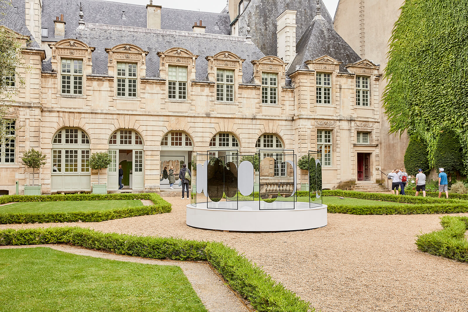 In the majestic courtyard of Hôtel de Sully, a historic mansion that stands as a symbol of the Marais district and Paris, British designer Paul Cocksedge has been chosen by Maison&Objet to create the annual installation for the design week. Staying true to his dry and conceptual language, Cocksedge opted for an enigmatic installation, named Squeeze, that interacts with visitors and the architecture of the Hôtel de Sully. In the centre of the garden, a series of mirrors, obtained from the compression of reflective volumes and mounted on a circular iron structure, invites viewers to contemplate their own slightly distorted reflections, thereby encouraging them to question their identity and its relationship with the surrounding environment. It is improbable for a spectator to guess what thoughts come over each visitor as they gaze into their reflections. However, as I walked past the mirrors, seeing some absorbed in introspection and others snapping selfies, I concurred that the design installation proved at last successful in offering a new perspective on the Hôtel de Sully's architecture, inviting a deeper appreciation of its details.