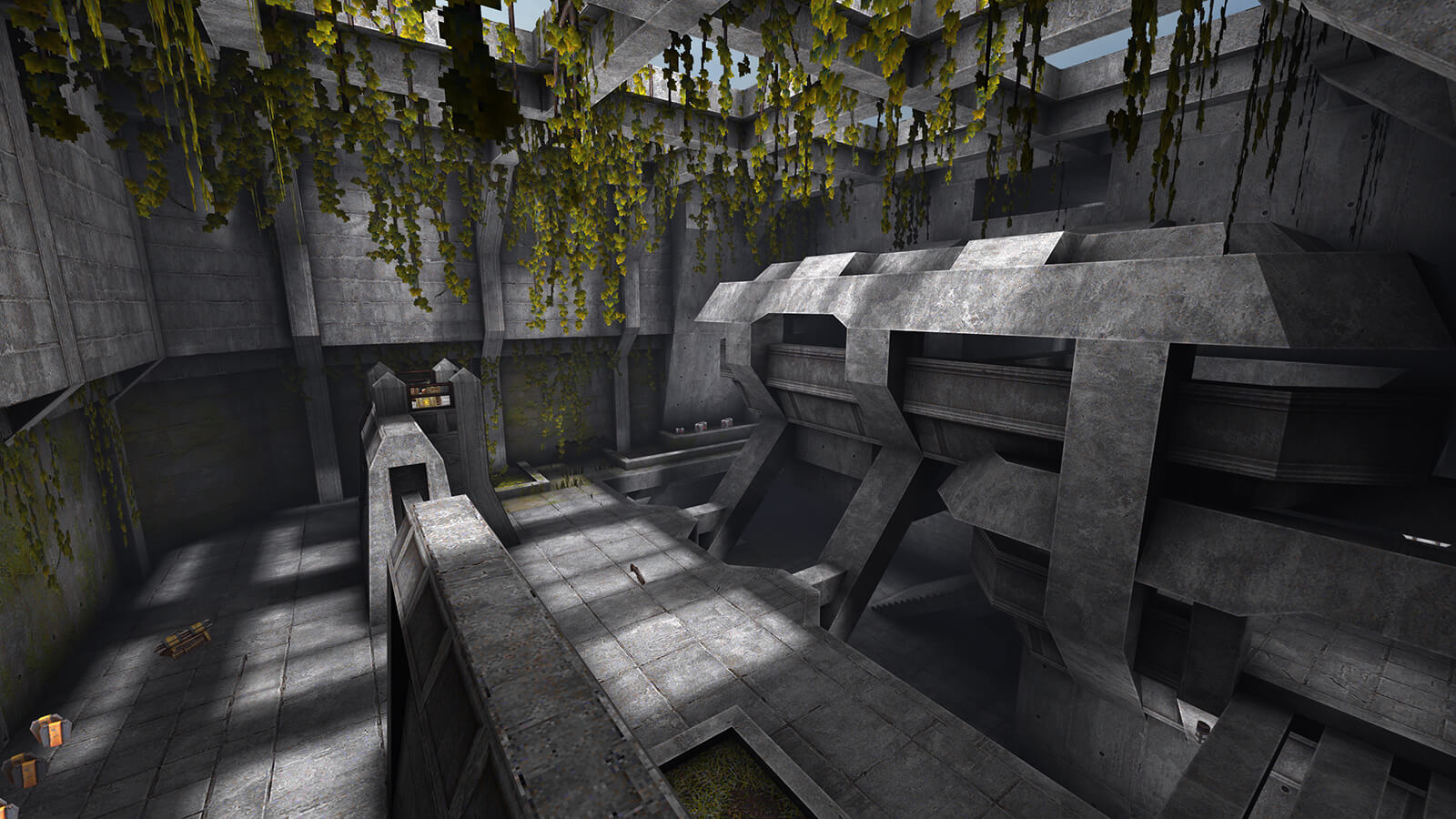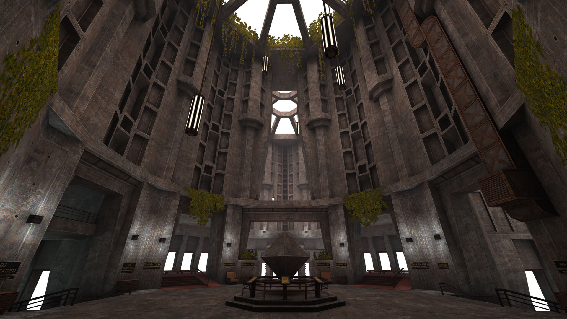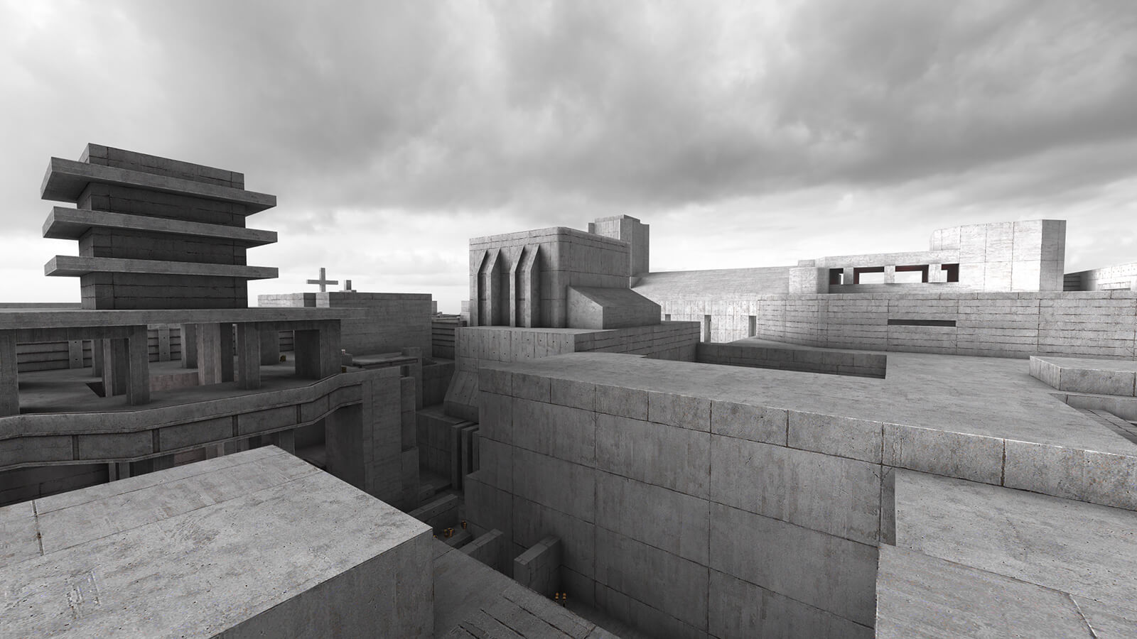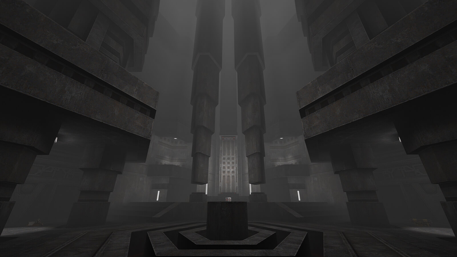 Over the decades, readings of Brutalist architecture have assumed a particular mode of engagement of the body within the space, wherein scale is equated with grandeur and the body an object, their interrelationship often being reduced to an aesthetic in the wake of digital media. Perhaps, a violent encounter is required to be staged, pushing the perceptions of Brutalism to new limits. This line of inquiry finds an unexpected testing ground in Quake Brutalist Jam III (QBJ III), an experimental, large-scale, community-built total conversion2 mod, celebrating the old-school level design of id Software’s classic first-person shooter video game, Quake (1996).