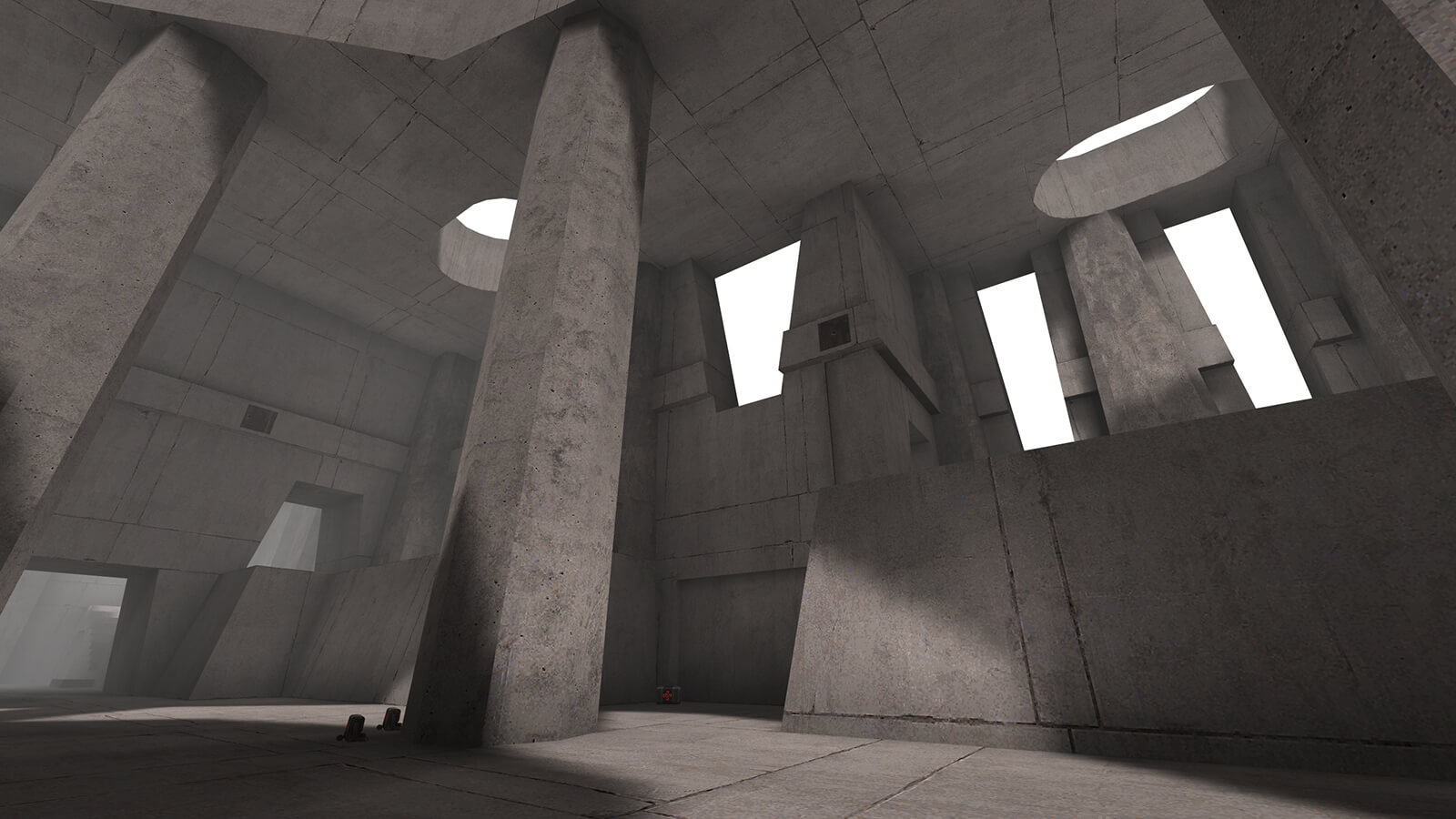 Spearheaded by US-based game developer and environment artist Ben Hale, online alias Makkon, and co-hosted by veteran modder Lain Fleming aka Fairweather, the mod introduces 77 brutalism-inspired maps apart from the 35 maps introduced in the first edition (2022) of the project. A community of game developers, game designers and modders came together to jam3, constructing everything from the maps’ environment designs and gameplay mechanics to audio and enemies. Tethered by Hale’s texture library, this community channelled the austere minimalism, stark geometries and monolithic volumes of Brutalist architecture to complement the low-polygon geometry of the game. For beginners who are unfamiliar with modding or do not own the original game, the mod also comes in a standalone version, which is ready to play. In that sense, the mod is an entirely independent game in itself.