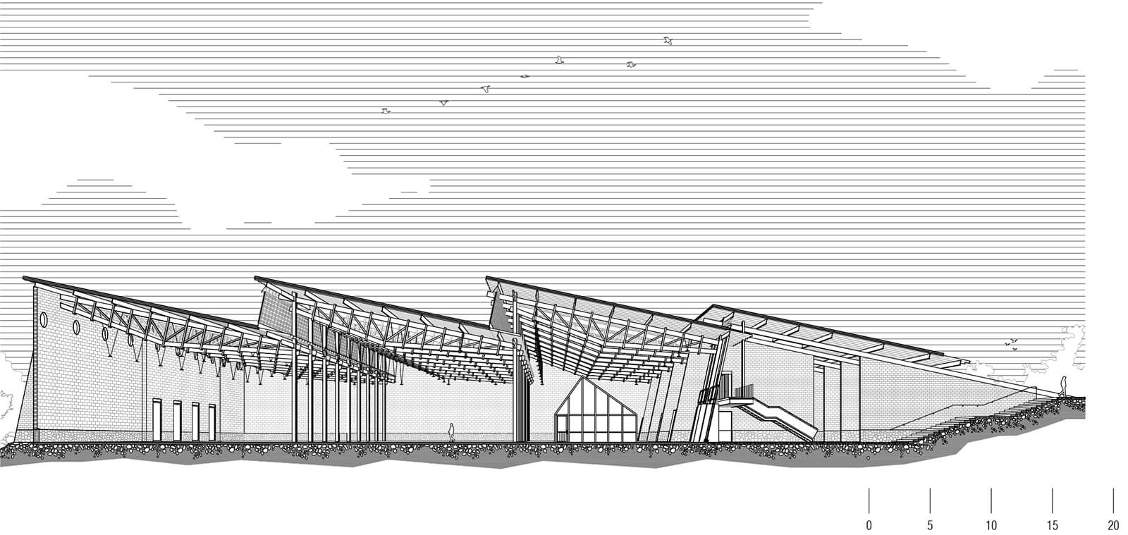 The last two projects of the shortlist make this tension quite stark. On the one hand, the Håndværkskollegiet i Horsens (or Crafts College) in Denmark, by Cubo Arkitekter & Danø Architecture, was developed as a site to provide a physical platform for protecting and encouraging crafts practices. The design is characterised by a particularly raw appearance, more in line with industry than the dignified and stringent look one may expect of educational spaces. This industrial expression is further emphasised through the use of trusses, steel members and other ‘raw’ elements in the design. The final project on the shortlist, Lindemans Brewery in Belgium, was designed by Brussels-based A2D architects and comprises two primary structures, a production hall and a public building for events. While the brewing hall has a facade inspired by steel silos, it is complemented with the use of vertical, concave brick elements as a nod to 19th-century breweries—another meeting point between historical reverence and contemporaneity.