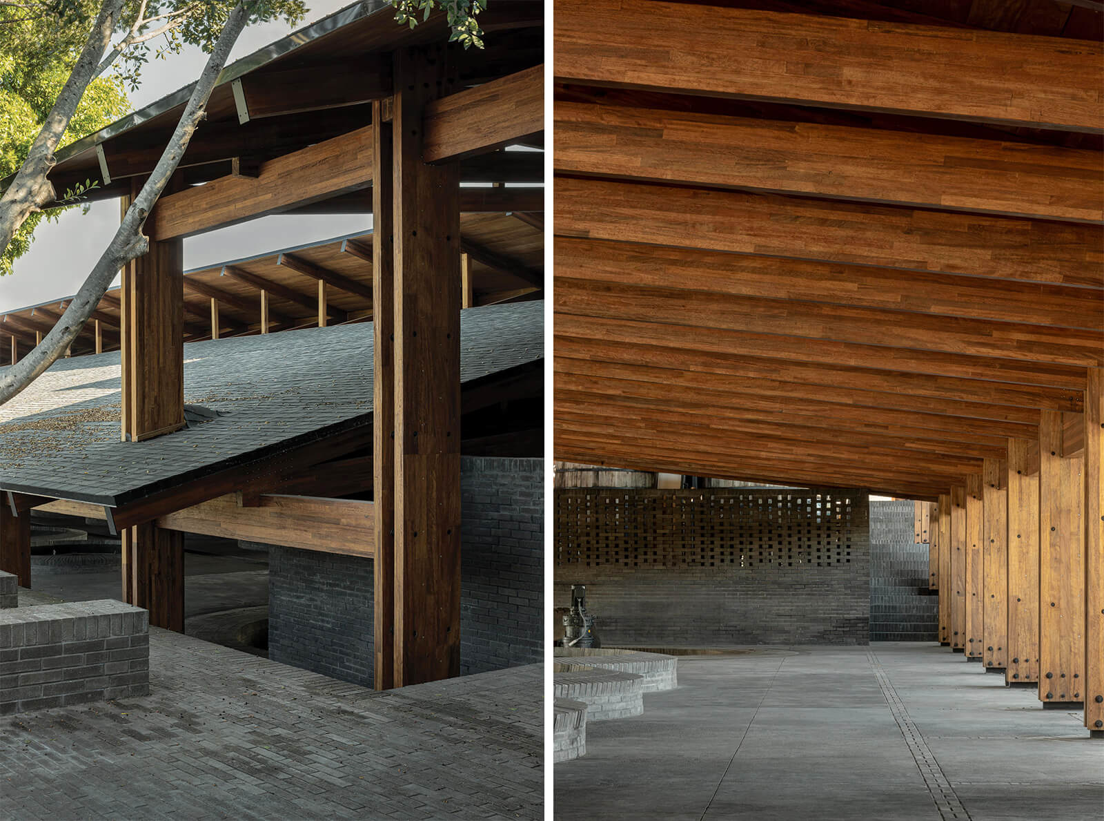 Spotlighting the role it plays within its built environment through the choice of material, the design for the Firemen Tower in Vall d’Hebron by Carles Enrich Studio updates an otherwise unconsidered building type with a sleek brick structure. The designers draw on the tower’s urban context while establishing it as a landmark within the neighbourhood. The juxtaposition of concrete along with perforated brick tiles here is particular, not only allowing the fire training tower to appear distinct, but also tying it to a raw, industrial aesthetic by exposing the structural elements of the design. Similarly, Neri&Hu Research and Design office make the industrial context of their project, Recast | Lao Ding Feng, its conceptual anchor. As the Chinese architects note, the inspiration for the adaptive reuse exercise stemmed from the site’s history as a thriving industrial area. Their intervention signals the neighbourhood’s transition to a more upscale, commercial zone.
