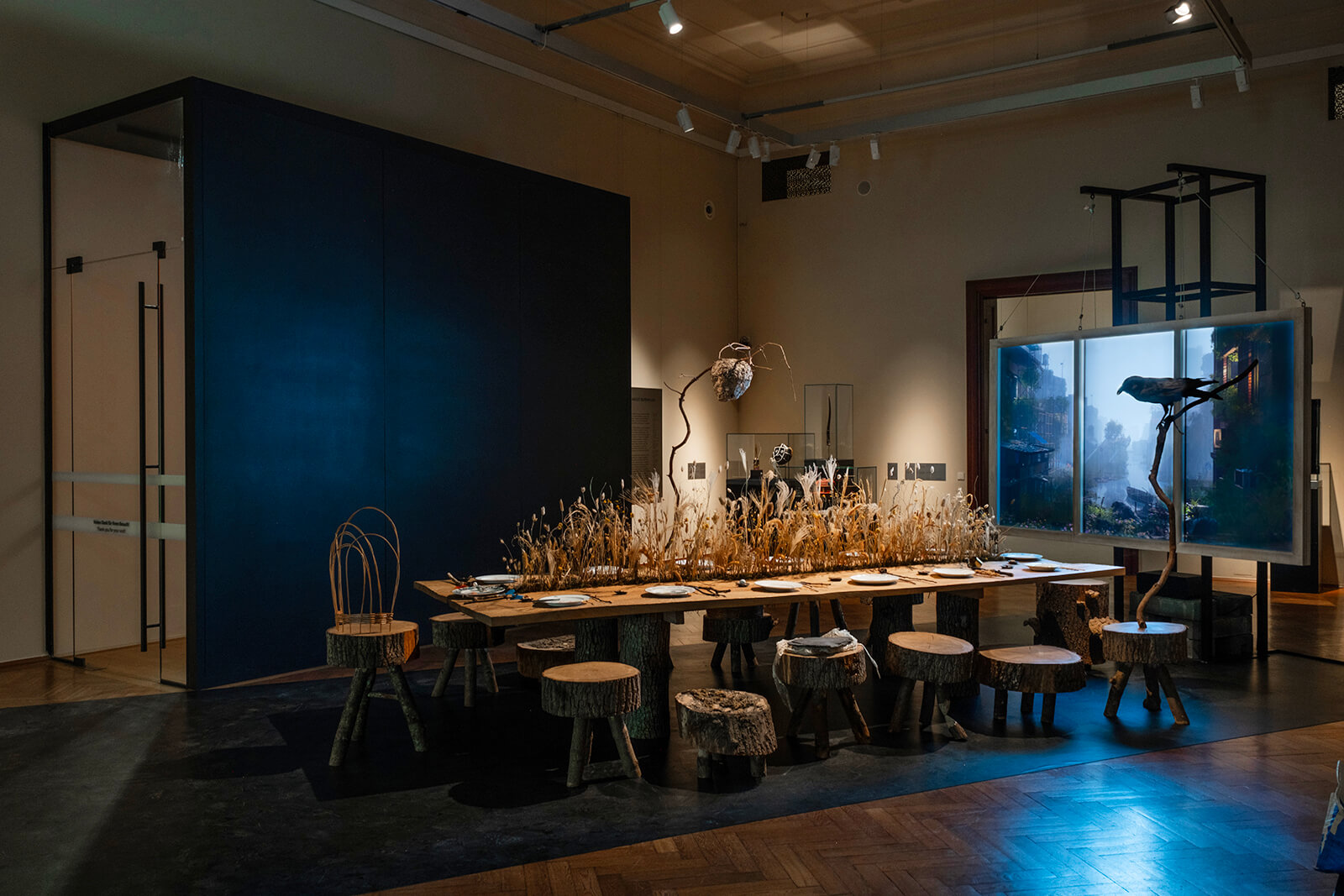 “Looking back, the three works trace a clear arc, though we could not have planned it at the outset,” Jain and Ardern note, describing Refuge for Resurgence as an act of ecological imagination which asked its viewers, “Can we sit together as equals? Can we imagine a social contract that is not just between people?” In a sweeping, unmarred open field, with not much else around, one sees a dining table laid out. The scenography is all makeshift, found objects scavenged from the detritus of the Anthropocene. It offers a view of the future that is at once disconcerting, confronting us with the consequences of our hubris, but hopeful. Life of some sort will go on, with the natural world. Even at the end of the world, we will gather, we will tell stories and break bread together; the installation insists. Isn’t that ultimately the most human thing to do? Survival is insufficient. So where do we go from here?