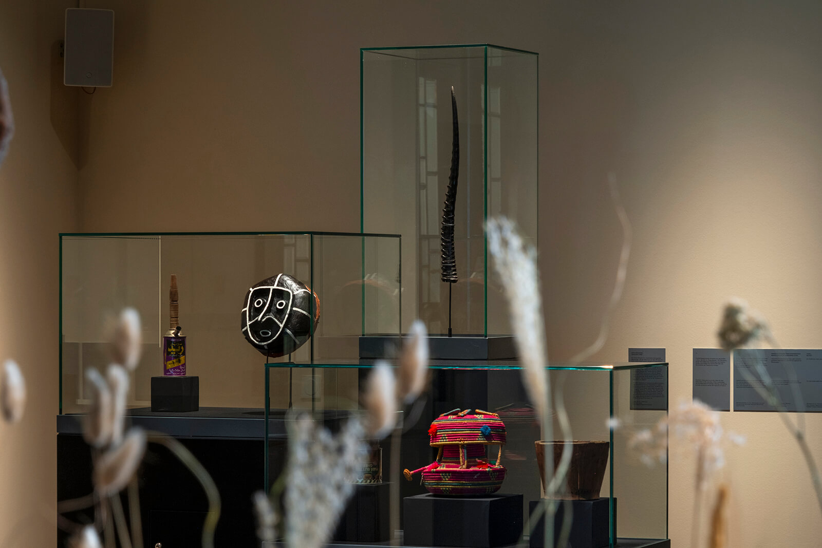 This is why the insistence on ritual, on spirituality and on the mythologies we invest in becomes so crucial in Superflux’s latest work. In conjunction with the repurposed talismanic objects that form Relics of Abundance, the duo also curated a selection of objects from the museum’s collection to form part of this future knowledge system, which honours the value of storytelling. “Bringing our speculative archaeologies in direct conversation with objects from the museum’s permanent collection is particularly exciting for us…A Piaroa mask sits alongside our speculative prayer bead made from a TV remote. They hold equal weight because they are both doing the same thing: encoding a relationship between people and forces larger than themselves.”