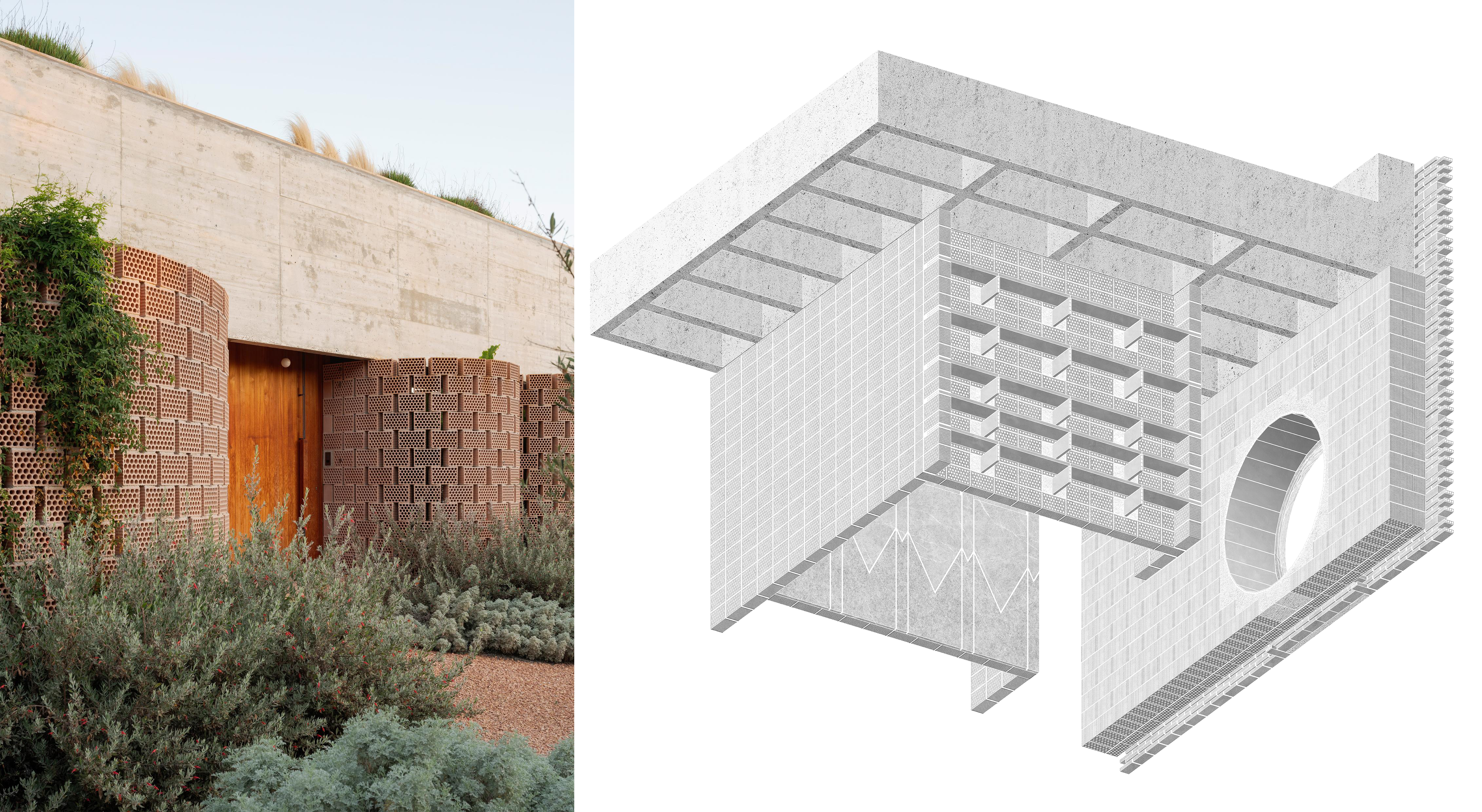 It's the projects in Spain that seem to break the idea of cohesion and insistence on uniformity that the other projects stress on, while still ensuring the brick is the hero. The three projects—House 1616 by Harquitectes, Manel and Montse House by Obo Estudi Arquitectura and Ca na Birgit by TEd'A arquitectes—apart from using the brick as a visual anchor, use it for its structural qualities more profoundly. For instance, the project by Harquitectes expertly makes use of cross-shaped brick pillars in its interior spaces, creating a spacious, open plan. Similarly, in Manel and Montse House, solid bricks create a pilastered facade, serving as the building's structural studs, while traditional perforated Catalan bricks create a lattice-like effect which allows the building to breathe. Finally, the Ca na Birgit house in Calvià employs locally sourced bricks for a design that plays with the idea of privacy and unboundedness. In the interiors, the bricks add a textural, patterned quality to the design, almost like wallpaper.