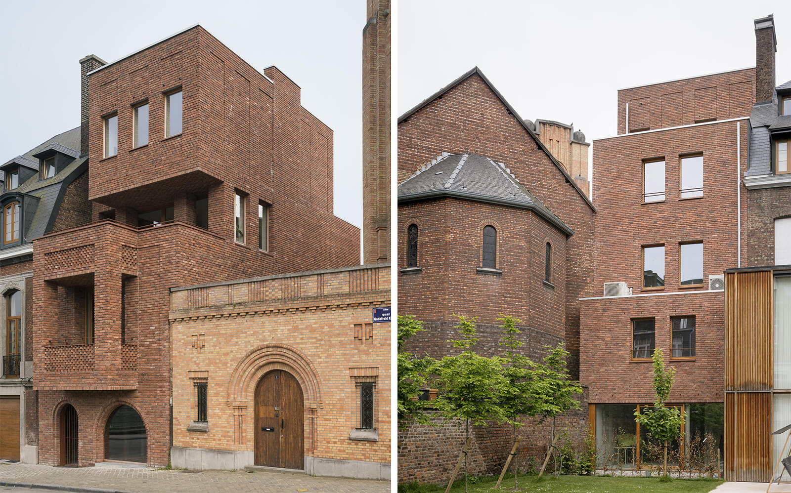 Quite contrarily, accentuating the visual qualities of the brick along with the immaculate precision of brick formwork in particular, Kurth Residence by Olivier Fourneau Architects, located in Liege, uses the material to echo the visual language of its urban context, particularly a Dutch-style Protestant church in the vicinity. The sharpness of the structure and its cubist form is enhanced by the brickwork, setting it apart from the historic church. A similar palette and commitment to historic context, if not technique, is noticeable in the only adaptive reuse project in the shortlist, Blockmakers Arms by Erbar Mattes. Through the addition of brick volumes, the design transforms a former pub into a family home. The choice of grey-brown bricks for the inserts was meant, as the British architect states, to complement the weathered look of the historic masonry, making the new appear imperceptible.
