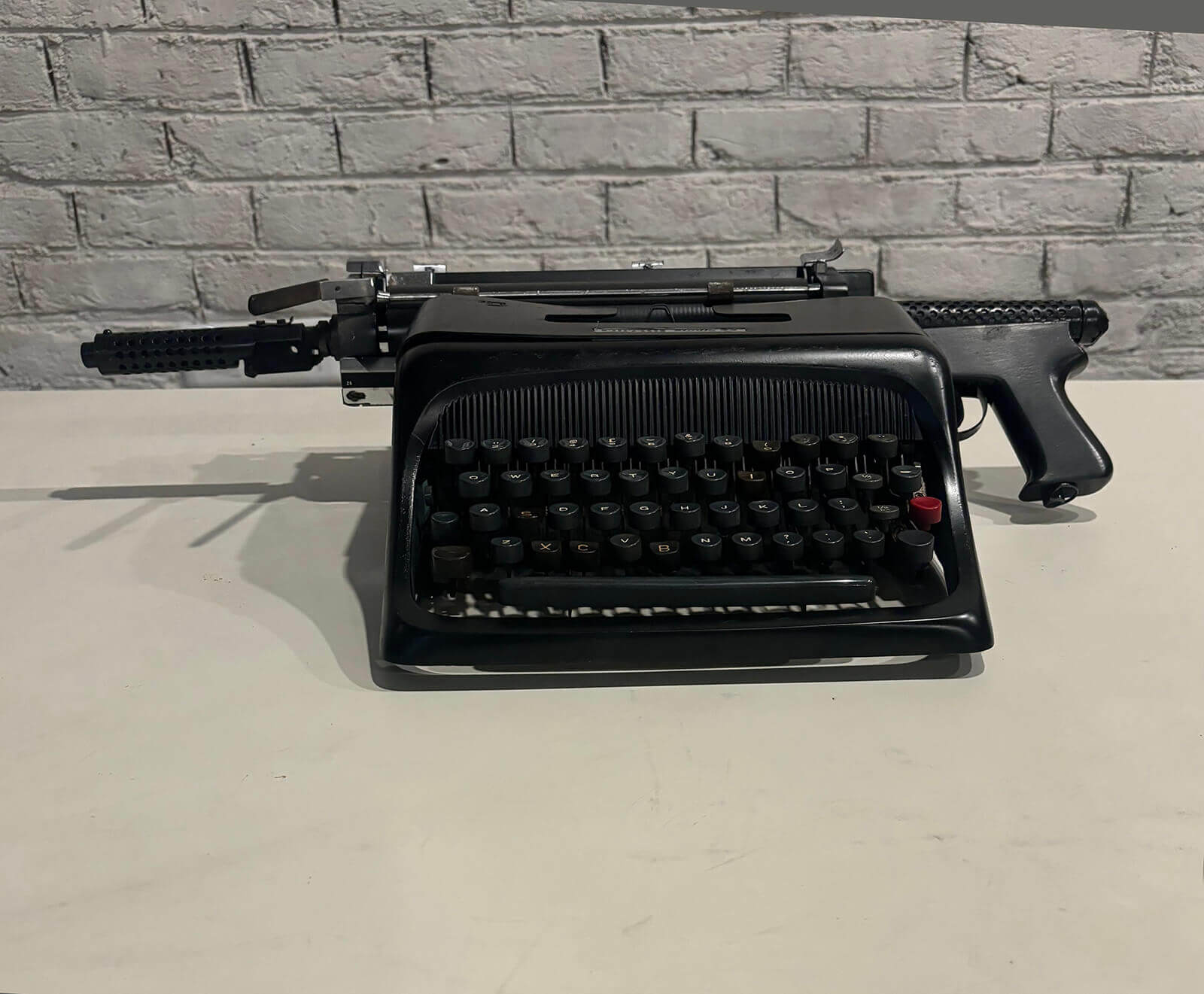 When the message is garbled and punctuated with politics and religious ideology, is it time to shoot the messenger? Working at the keyboard, the writer is the new literary assassin, too often marked by extreme views and constant denunciation. Journalism’s eloquence is lost to disharmony in a typewriter turned revolver, an instrument that is as much a communicator as a lethal weapon. So too, the village hand pump and hedge shears, both together, suggest the absence of daily utilities. No water, no electricity, no cooking gas. In a world of malevolent and incompetent deception, merely fixing the symbol of a potential provision is enough.