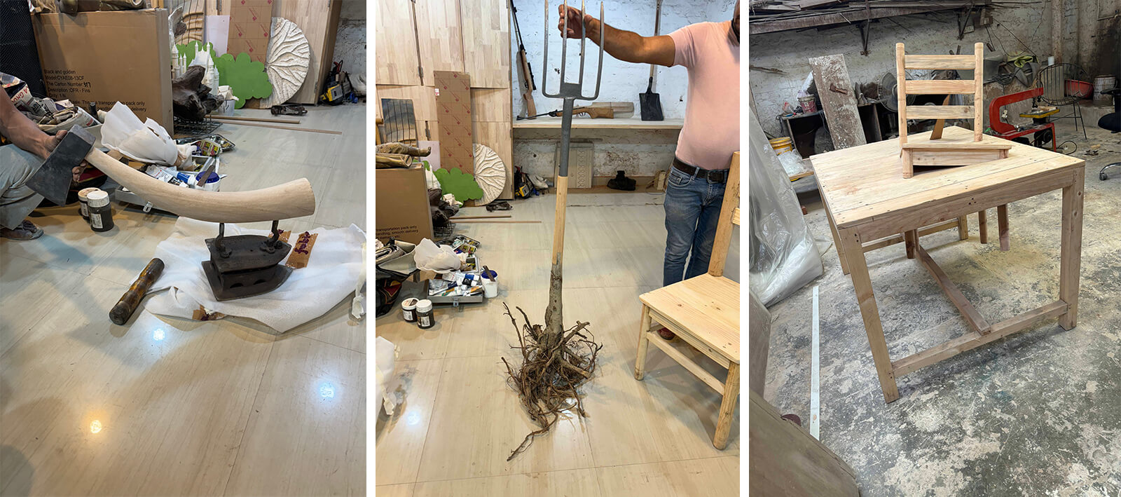 (L-R) Domestic Violence, Nature’s Cutlery, Library Table and Library Chair by Gautam BhatiaImage: Courtesy of Gautam Bhatia