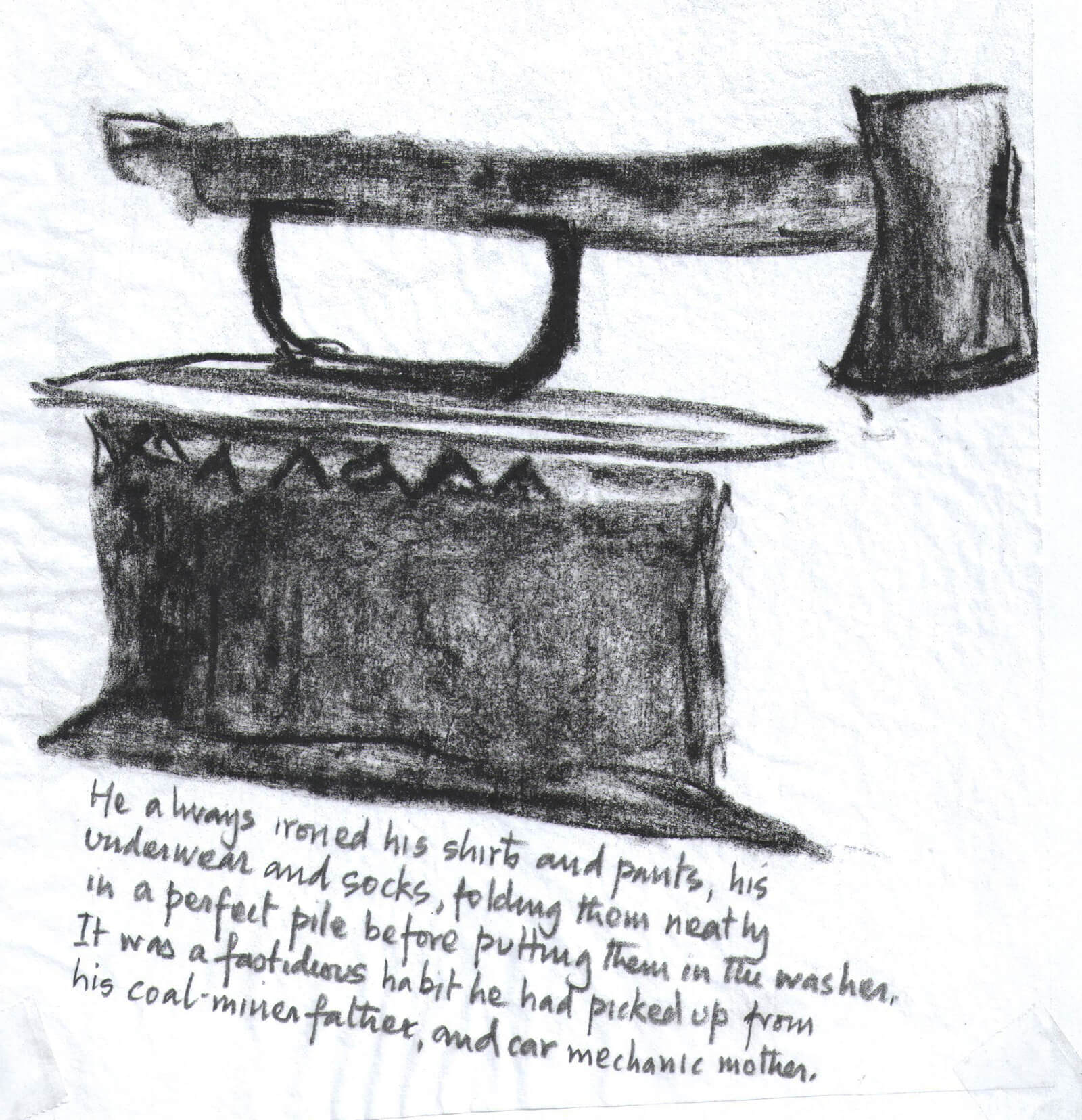 A conceptual sketch of a clothes iron supporting an axe as a handle | All the Beauty in the World | Gautam Bhatia | STIRworld