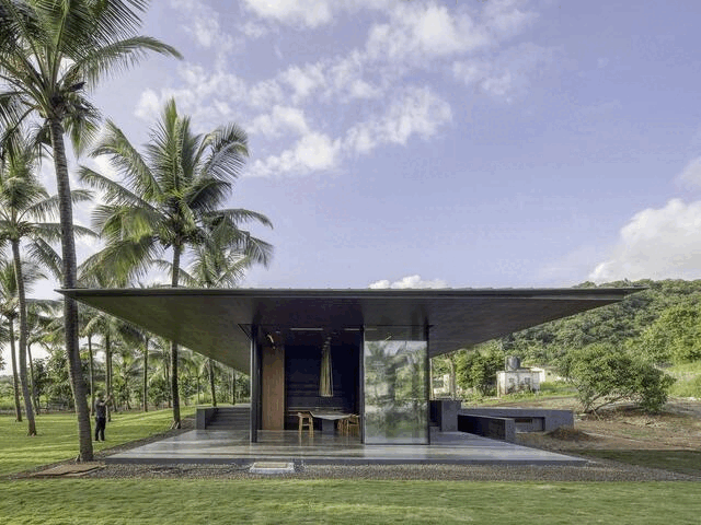 Parikrama House in Murud is perhaps best described in the architect's own words. "Parikrama is a project very dear to us. It is a case study home, therefore what emerged was a carte blanche of architectural solutions, a renewal of sorts. The walls are tilt-up stone panels which are eleven feet tall without the use of brick, mortar, and plaster to hold them in place, the structural members were metal columns and trusses used for their precision. The large glazing systems glide seamlessly into a cavity created by these double stone slabs to disappear on the flick of a switch." A wall that has no brick or mortar holding it together still stands and is an example of the importance of having a basic understanding of material capabilities and structure. While the private residence is a case study in structure, it still has a poetic inspiration, Merchant added, "When all else would die and rot away, the stones will still stand. Architecture is about ageing and rebirth."