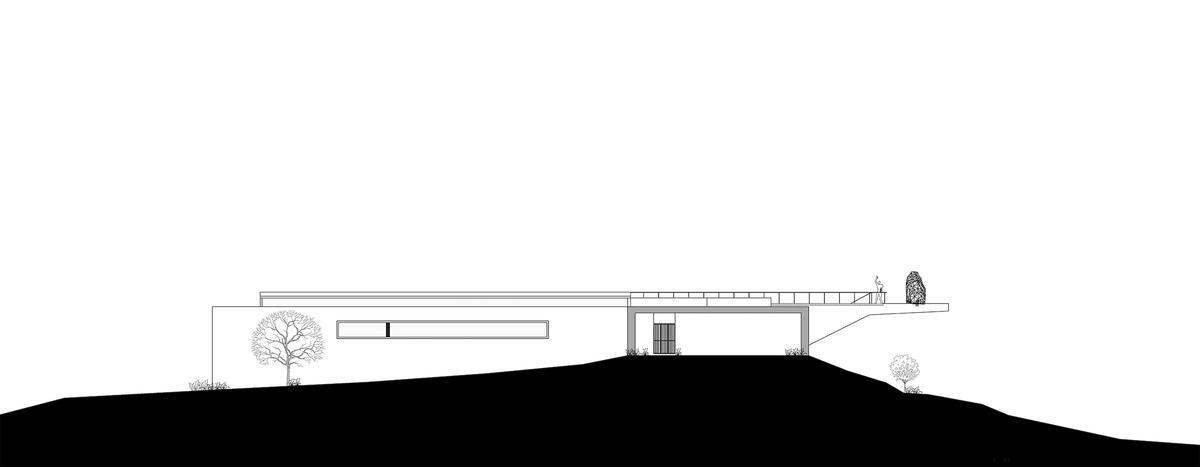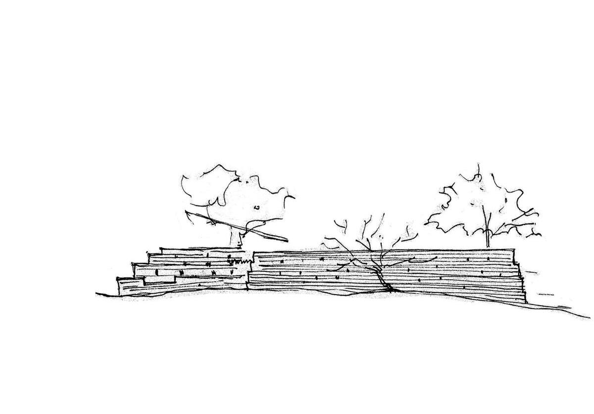 Sitting on the top of highland is SPASM’s Soaring Rock. The building on a surface view seems to be anchored by this rock sitting in the corner of the building. Taking a whimsical approach, Merchant stated, "The building is like a cruiser floating over the hill, guided by the rock at the helm.” She continued, "This was a dramatic site on a highland, looking down on a silver surface of a local reservoir and the farmlands around. There is a palpable sense of liberation when one reaches the top, the ‘rock’ is about that feeling, a kind of suspended animation, a state of bliss.”