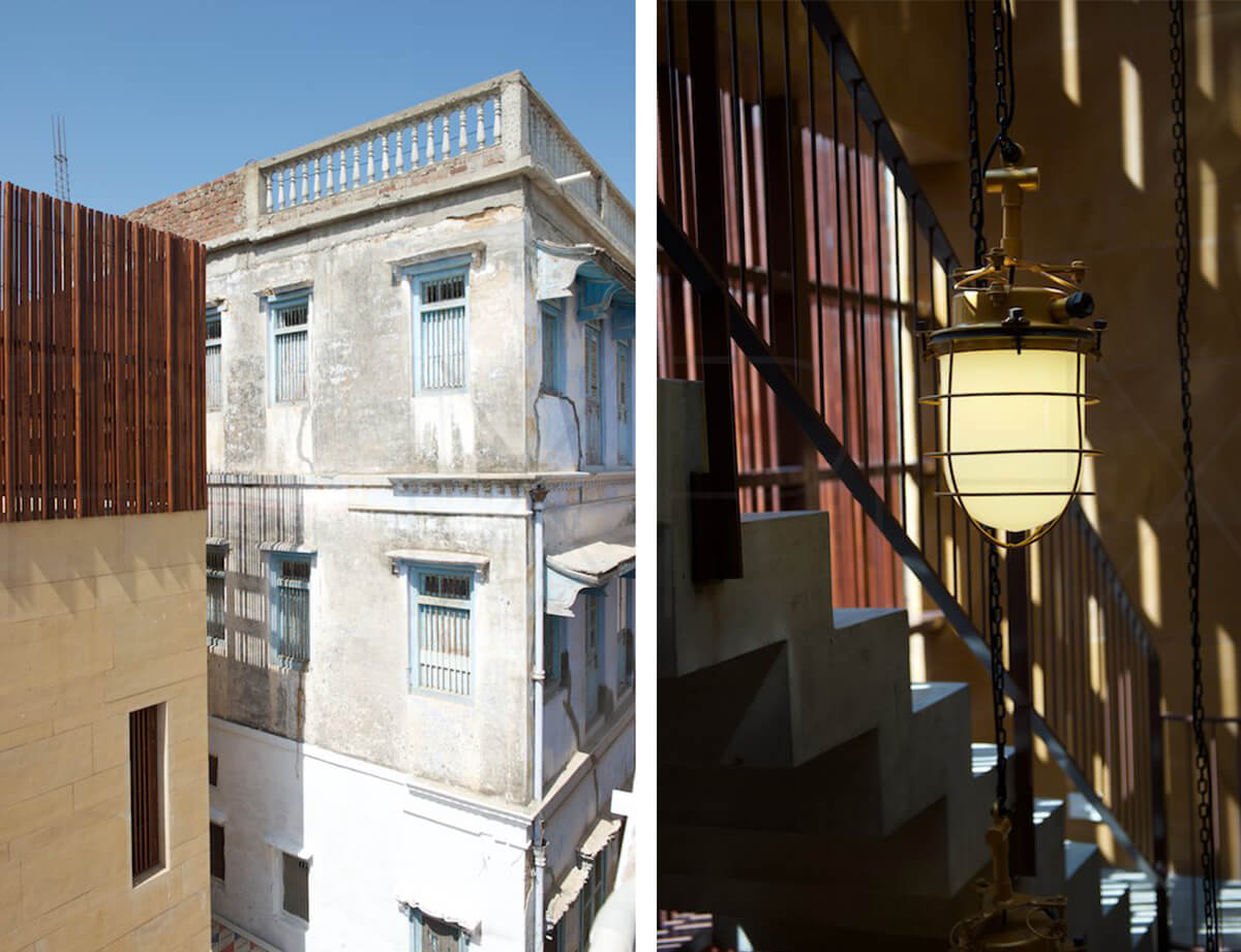 Starting with the Mandvi House, a grid-locked structure bound by this townhouse style structure in the Kutch region of India. There were limits to the outward changes the home could incorporate, considering the stone architecture and stone facade of the building. This did not limit the design relationship between the interior and the exterior. An inward-looking space, the openings and fenestrations were carefully selected. Panjabi spoke on how they viewed the context saying, "Homes of erstwhile Mandvi were all built organically, sharing walls and leaning on each other. They were lined with very thin horse-cart lanes, and courtyards were the climatic solution for the homes' breathing." How does one take this context, and create an interior design that works in synchronicity with the architecture, the climate, and its immediate context? Merchant gave us an insight into this saying, "We played within the same milieu, and used our court to heighten the sense of light and passage of time. The remaining openings were intentional, all kept thin like gills only to breathe. There's no view, except the beautiful Kutch sky, which we leveraged with a rooftop private mashrabiya style terrace."