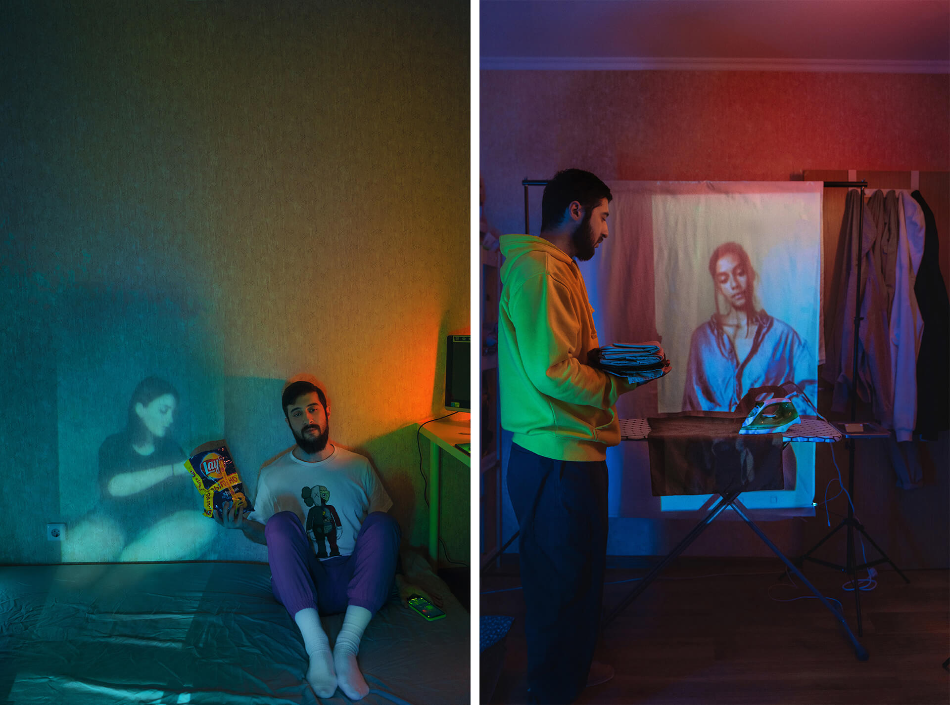 Karman Verdi (KV): You know, when I sat in lockdown last spring, I just wanted to take pictures like I used to. It was eating me up on the inside. But when this idea came to my mind, I realised that I wanted to do something deeper and more touching. I wanted to tell a story about each of us. In this format, it seems to me that the projection does not look like just an image on a surface, no? I saw the projections of people, like ghosts, phantoms, who decided to stay with me for a while and I could not refuse them. The name of the project came by itself.