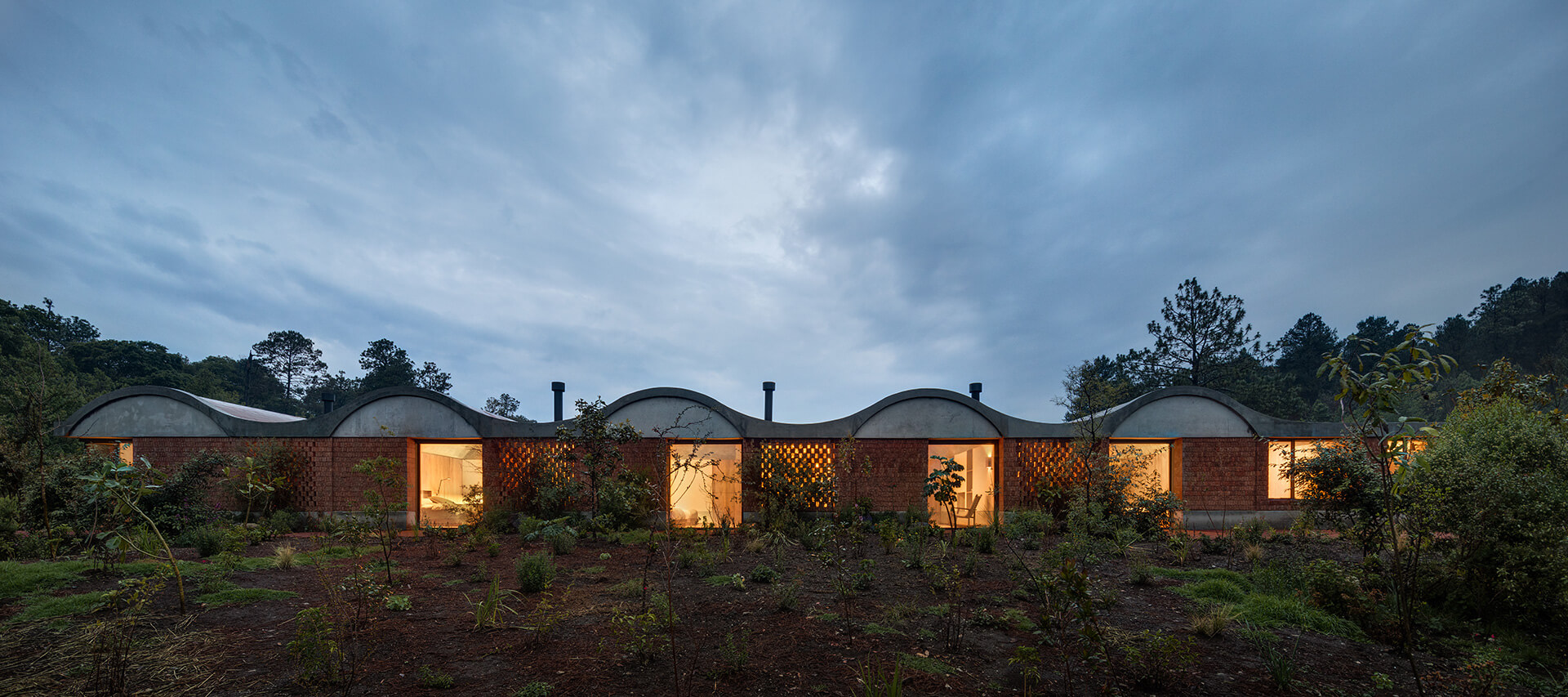 One of her most illustrious works, Casa Bruma (Bruma House) questions the archetype of a house and organises different spaces around a central courtyard, to harness maximum natural light from morning to noon. The ‘exploded’ holiday home is composed of nine isolated, dark blocks of varying heights, placed with respect to the existing on-site vegetation. Another one of her stunning projects is the Open Museum Tamayo Pavilion, created for Design Week Mexico (2018) as a space of reflection and rest. The vaulted, warm toned Terreno House (2019) is developed around four bricked courtyards, presenting intended contradiction in its open and secluded planning.
