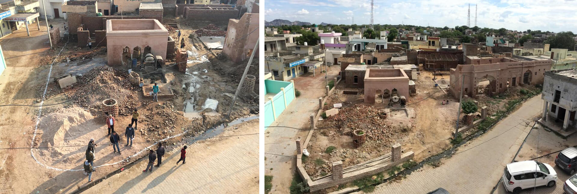 As we set course on the National Highway, Feenstra and I engaged in a conversation, he briefed me about what awaited us. The BC Jindal Community Centre was perceived in the location where the ancestral home of the Jindals stood. Two structures on the site— one aged almost 150 years and the other 90 —were the starting point of the project. When Feenstra first visited the site in September 2018, both the structures were in ruins, and while the client suggested demolishing the existing structures, Feenstra documented, researched and therefore insisted on keeping them, preserving them as much as possible and adding on to them. Feenstra’s understanding of the history that entailed the structures, guided him to revive what is left of the Jat havelis and transform them into a place for the local community.