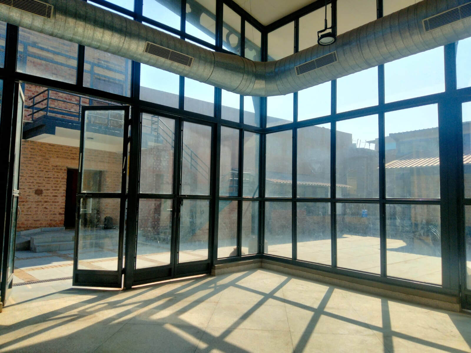 The second question daunting the architects was: “Can we preserve this (the almost deteriorated structures of the haveli)?” Feenstra showed me pictures of the structure, from back when they found it and started working on it. The structure had been affected by climatic, biological, and man-made causes. There was staining on the brick wall that had lost its plastering due to weathering, windows that had fallen due to decayed wooden frames, soil deposits and deformation in crafted arches, brick bonds that had started to loosen, fallen roofs, and a foundation that barely seemed to be holding it all together. Looking at the images, one could assess with certainty the challenge that Feenstra and Lal were taking up. It also made me curious about his confidence in badly wanting to preserve whatever he could and not wanting to start afresh. “There is history in those structures. It is the home where Jindal spent his childhood years. The walls remember the laughter and memories of those times. It wouldn’t be fair that we completely let that part of the past disappear,” shared Feenstra.