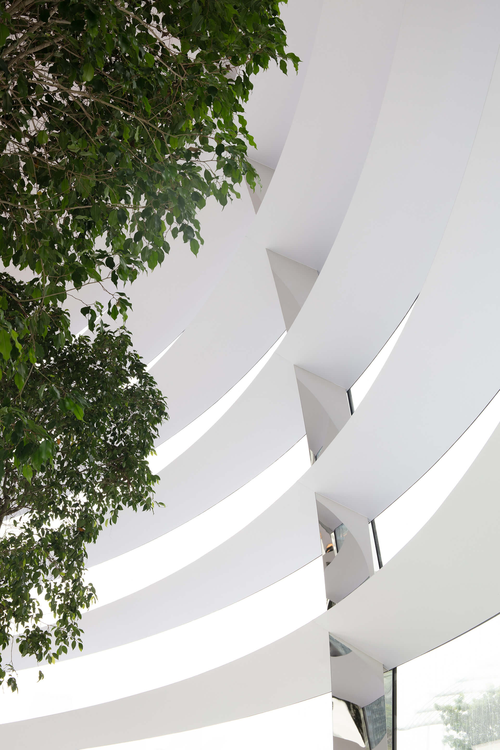 “Apple Marina Bay Sands is all about the delicate interplay between transparency and shade. The structure dissolves the boundary between the inside and outside, creating a minimal platform that floats gently in the water, looking out over the bay and the spectacular Singapore skyline,” shares David Summerfield, Foster + Partners.