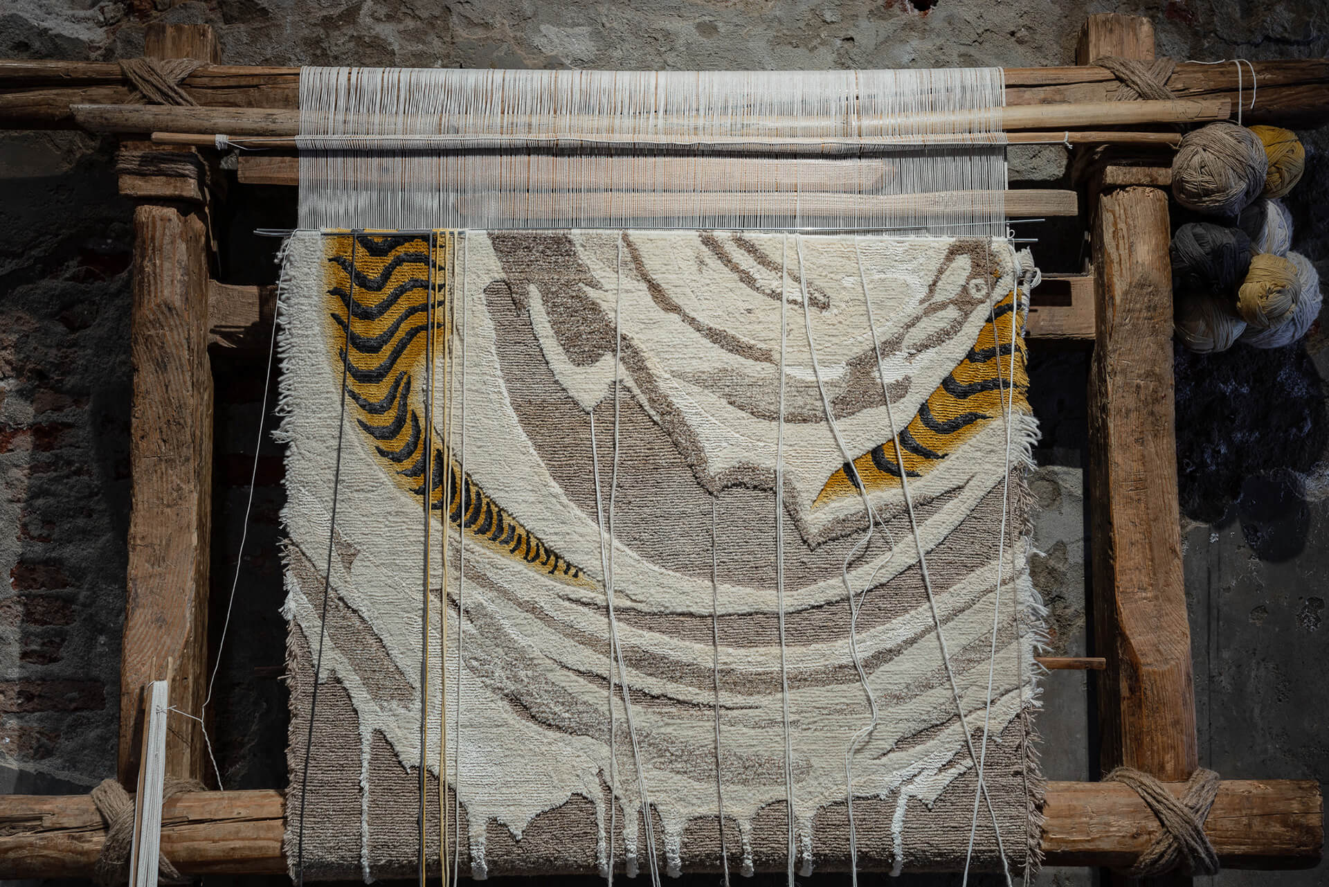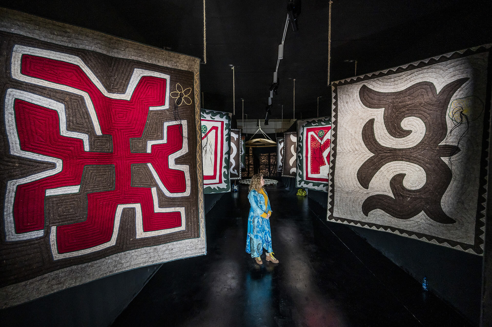 The visual artist Firouz Farman Farmaian represents Kyrgyzstan, making its debut at the biennale. The 10-hand-stitched installation The Gates of Turan indicates the region of Tur, for which, as the artist informs STIR, “Decided to go all the way and bathe my psché in Kyrgyz pristine nomadic culture to pass on this message." The viewers are welcome to pick up a cushion as they step into the dark timeless vortex of the Gates of Turan installation. It is equalised by the vibration of the soundscape: a flute aligns to the sound that the earth emits into the universe - 432.1HZ. It sits under the Tunduk, the Kyrgyz Yurt Cupola, which is a gateway to the cosmos. This experiential nature of the installation is an immediate connection with the viewers. Farmaian explains the installation, "Accompanies a culture into the 21st century: transforming immemorial heritage, highlighting values related to the respect of mother earth, nature and spirituality."