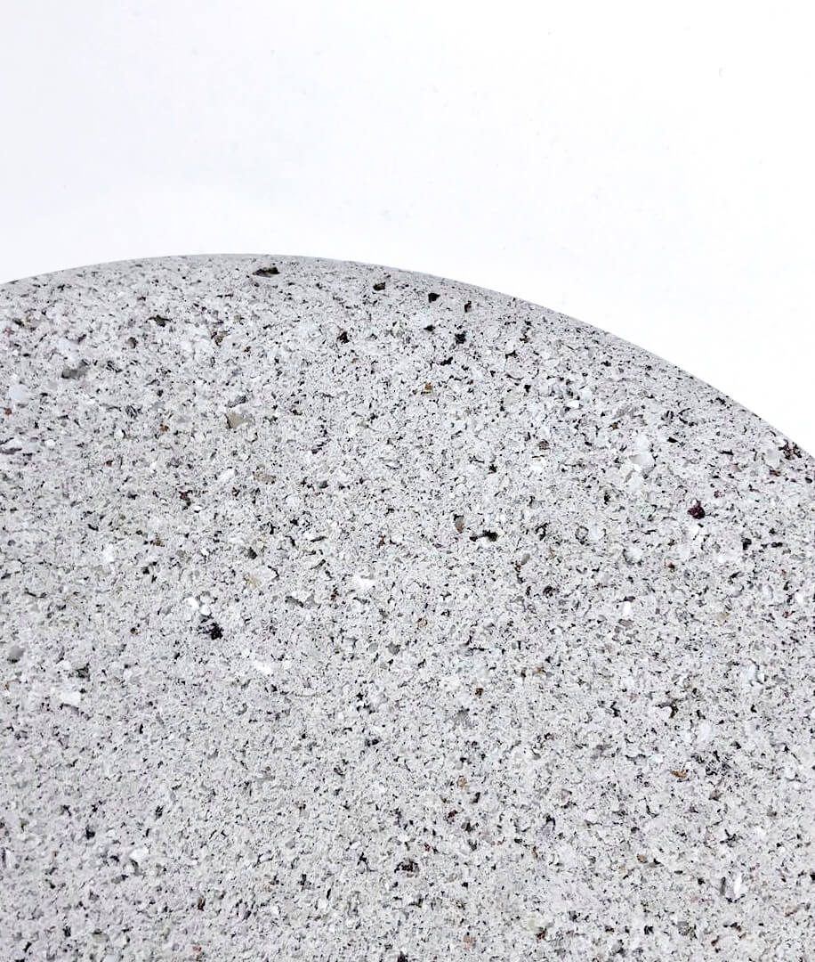 Markos Georgiou presents Ostra as a ceramic-like biomaterial made of waste oyster shells. Prioritising circular economy, the material is designed in a closed loop that aims to aid the regeneration of the natural systems of our world. Made from Ostra, the Ostra lamp is a statement of what the material can achieve in terms of design and construction. Following extensive research and experimentation, Ostra was made by using seaweed as a binding material for the oyster shell powder. According to Georgiou, this biomaterial can be used as a sustainable alternative to concrete.