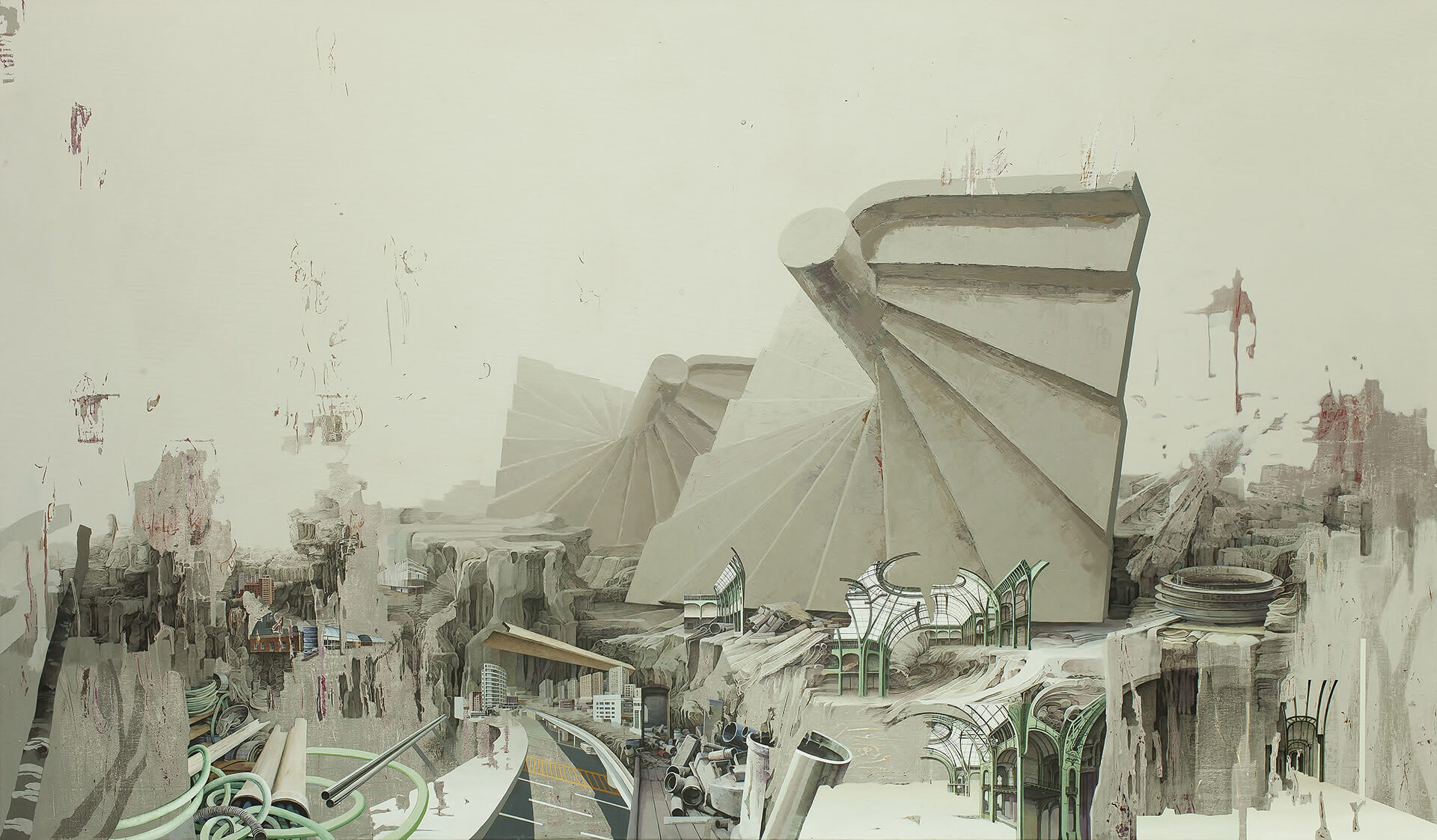 The arresting unsettling nature of Jung-Yeon's paintings, be it 4 Minutes, Sleep,or The Staircase – if open a space to access metamorphoses, it neither proposes the end of the world nor the pure void. Borrowing the idea of liminal spaces from the writings of Carlo Rovelli, a quantum physicist who explains the notion of space-time in today’s science as "What you see can’t be real, it’s just an illusion”, nurtures her paintings. However, the inquisitive mind would like to know Jung-Yeon's processes and techniques that translate conceptual thoughts to tangible reality. Jung-Yeon explains, “It took me a long year to free my drawing and painting techniques. I had always thought that the element of unpredictability in my paintings and papers was something disturbing. I thought that creation is a thing entirely mastered and conceived by the artist. Even before I started, I had the final image of my work in my head. But I gradually felt locked up inside myself and my creative process was increasingly stifling me.” She expresses this struggle exquisitely through her words, “As if I had designed a well-decorated theatre setting, but without action, without actors, without noise, something empty.”