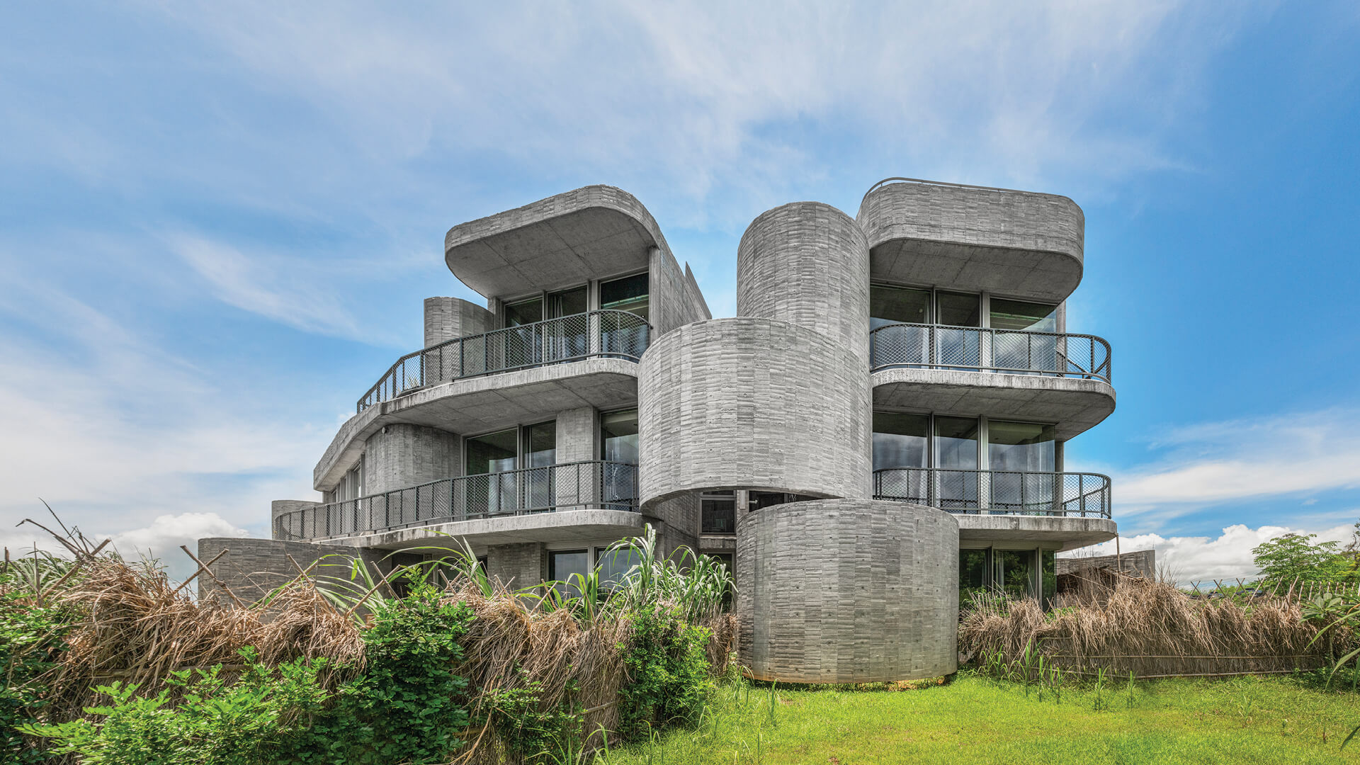 A series of curved concrete walls give shape to this eight-room, three storied retreat in Taiwan, designed by Taipei-based practice XRANGE Architects, as a mystical paradise emerging from nowhere. Nestled cosy amid tall grasses and vast acacia forests, the building gets its moniker owing to its flowing form garbed in a concrete shell. "The retreat is a building where the walls wander throughout like flowing ribbons. Driven by the constraints and inspired by the raw beauty of the natural surroundings, the design concept seeks to create a sense of quietude and permanence with a single architectural element and a minimal palette of materials; defining the entire architecture with just curves walls that are both structure and form, inside and outside, exterior and interior all at once,” describes the design team.