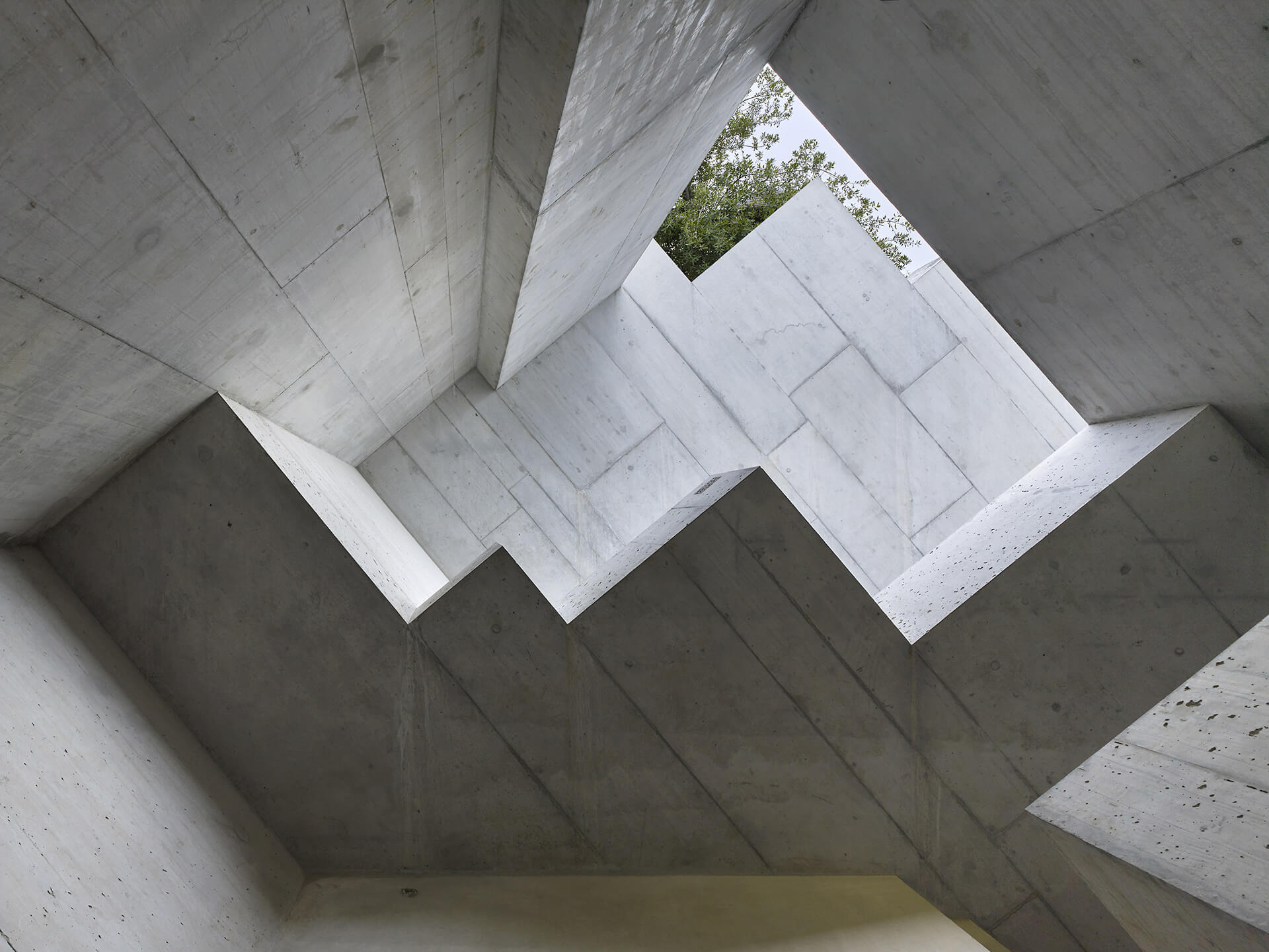 Sculptural geometric forms in exposed concrete are built into a landmark sandstone rock formation in Lucerne, Switzerland, as part of this organic architecture, narrating a tale from the geological period's past in this theatrical project conceived by Miller & Maranta. The Basel-based architecture practice carried out the conservation and extension of the Gletschergarten Luzern in Denkmalstrasse, located at the foot of a large sandstone rock that dates back to a marine beach formed over 20 million years ago. Accompanied by nude stone architecture, massive pieces of concrete are arranged in the direction of the geological layers of the area where visitors enter the labyrinth-like interiors with an exhibition space from a depth of 30 metres from the garden outside, ascending towards the light in an experiential, gracefully brutalist setting.