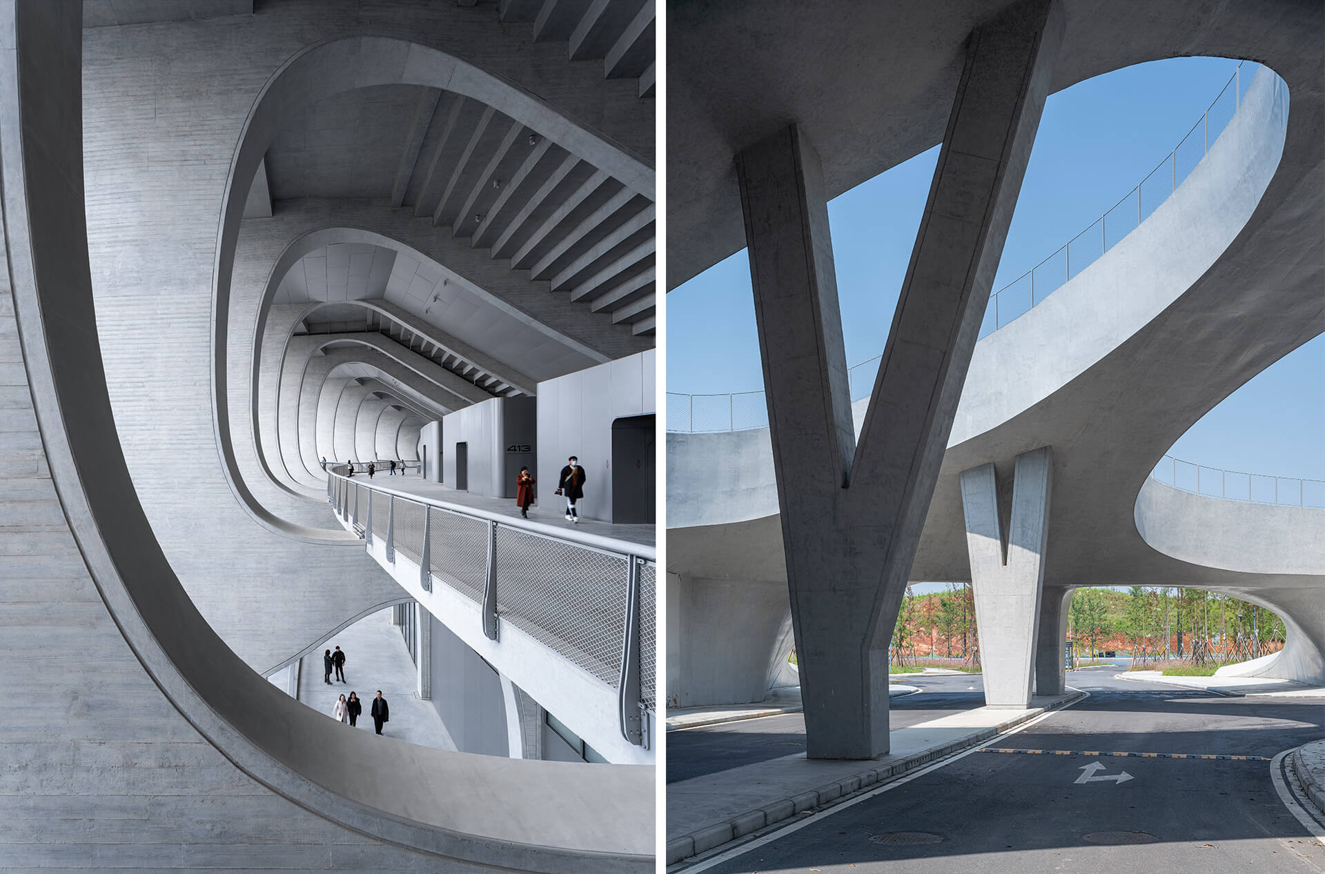 These architectural authors, along with a few others in recent times like Ma Yansong of MAD Architects, have seemingly, painstakingly, struck gold with this liquid stone—casting sculptural structures that surprise and enthral with their modern geometries and brutalist forms in béton brut or finished concrete, replete with undulations and fluidity as well as strict and flowy personas. These structures are made magnanimous, forgoing concrete's seemingly unforgiving, rigid materiality, by swerving, surging, bending at mad angles, burrowing underground, or soaring to the heavens, displaying its rigorous acumen of casting forms of poetry, resilience, and drama.