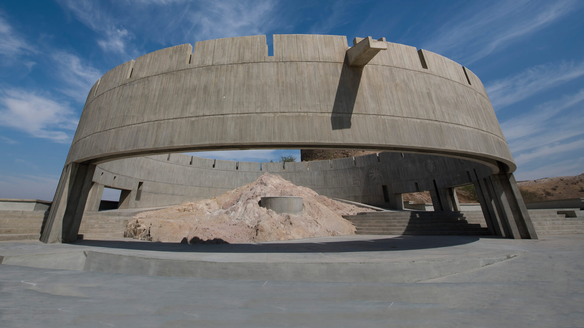A contemplative memorial for the victims of the 2001 Bhuj earthquake in Gujarat, India, a terrible tragedy, the Smriti Van by Vastu Shilpa Consultants (founded by Pritzker Prize laureate and RIBA Gold Medal awardee, BV Doshi) is spread across volatile Kutchi terrain and uses natural channels to transcend monumentality. The monumental concrete architecture in its resilience and soaring being looks hopefully to the future with remarkable sensitivity, while reminiscing its site’s dark past, with a steady and gentle influx of water local to the region.