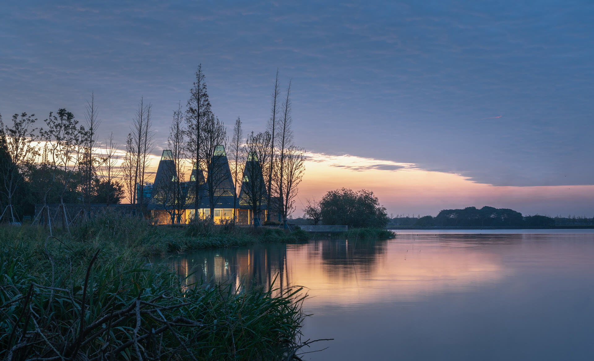 A lakeside restaurant quite unlike any other, the Restaurant of Metasequoia Grove by GOA is located at the west end of Shanwan village in the Wujiang District of the Suzhou countryside. The typical waterside village is located on a vast swamp plain, with verdant vegetation and stretching green landscapes. Being the first constructed phase of a low-rise leisure-led complex development by the China-based practice, the composed restaurant's architecture functions as a dining space for visitors, apart from functioning as a small banquet hall for holding a variety of public events.