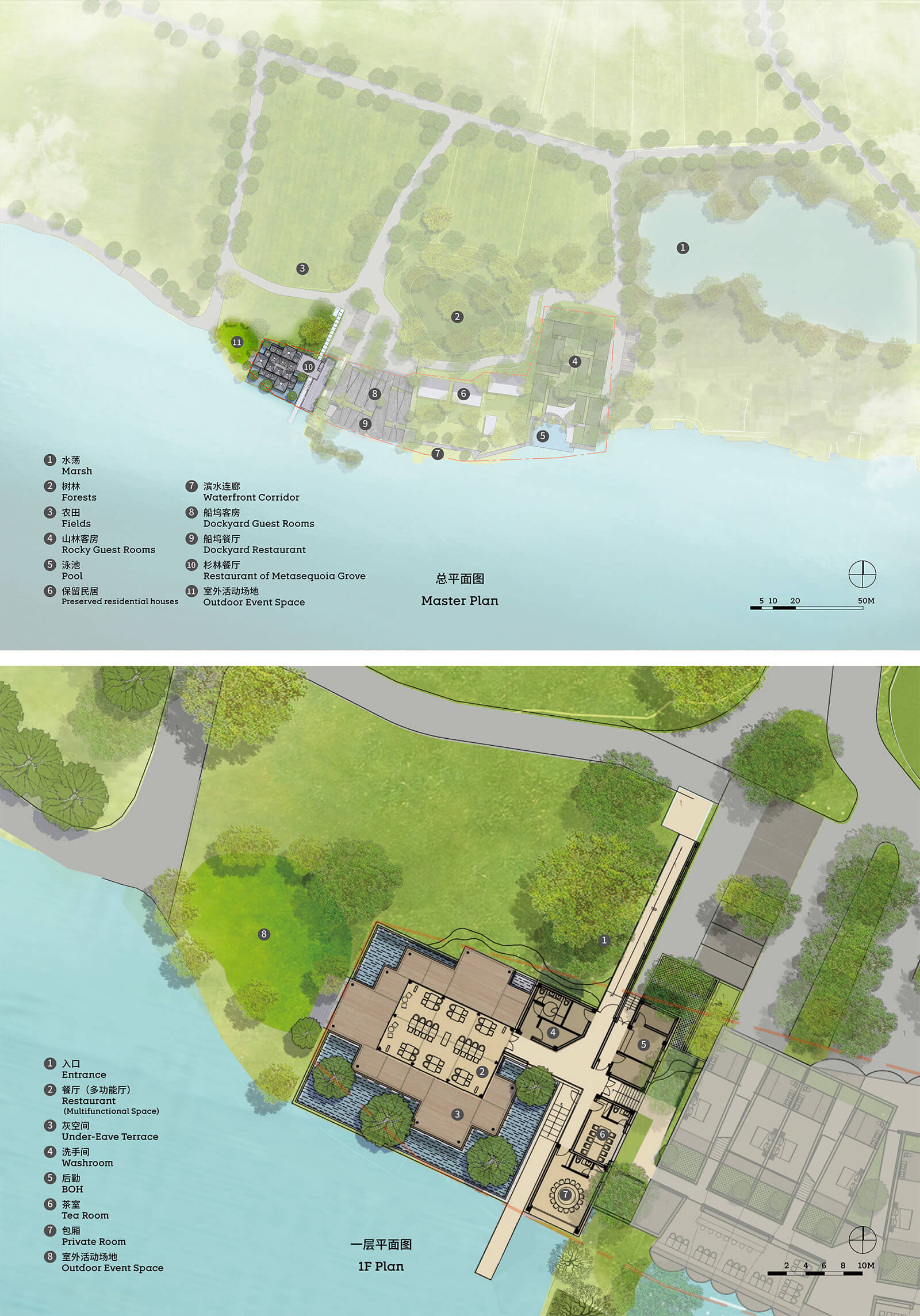 "Rather than being just an architectural construction, the project is more of a landscape that immerses into its natural context, eventually becoming part of nature. It delivers joyful moments by the water, and peaceful nature experiences where architecture enables new ways of seeing the landscape,” the Chinese architects share.