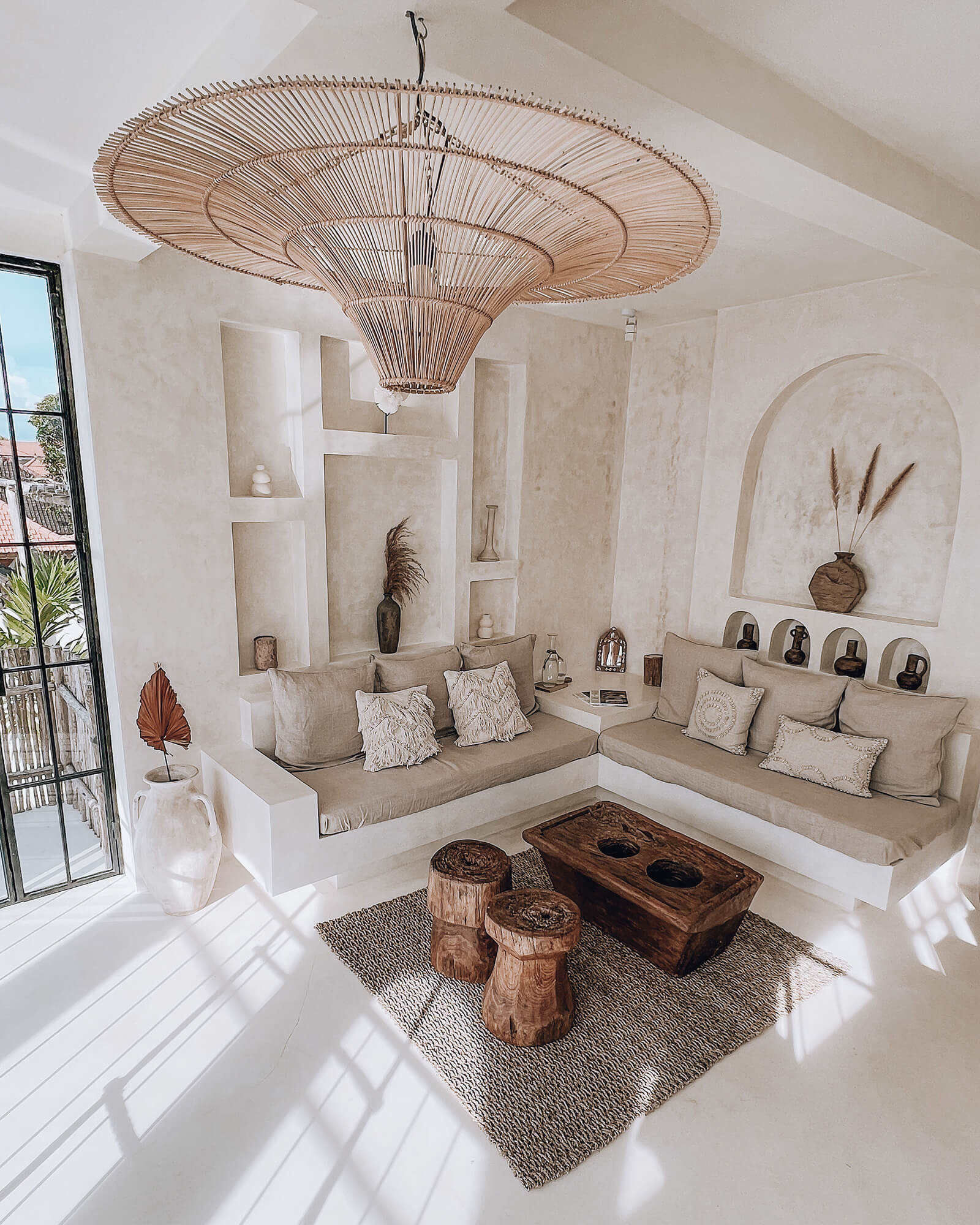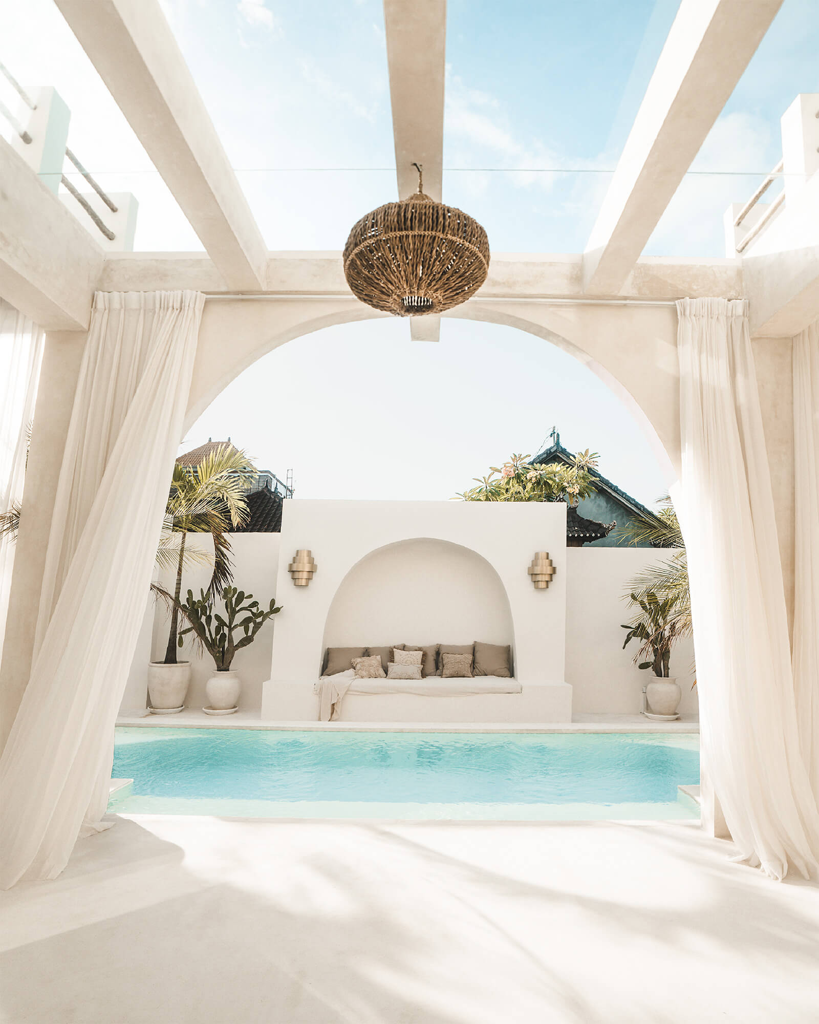 Casa Nomada Bali has 1,75,000 followers on Instagram. And for good reason. Picture pristine white walls, flowing cotton curtains, wooden furniture, rustic decor pieces, rattan chandeliers, plenty of natural light and a dreamy outdoor turquoise pool. In 2017, Erika Calle Crespo and Marco Haberberger left their corporate jobs in Germany to travel the world and pursue their passion of photography and design. The culmination of this endeavour is Casa Nomada, an approximately 3,000 sqft villa in Bali, which they own and designed themselves. The villa is located near the beach in Berawa, a popular neighbourhood of Canggu, a resort village on the south coast of the Indonesian island of Bali.