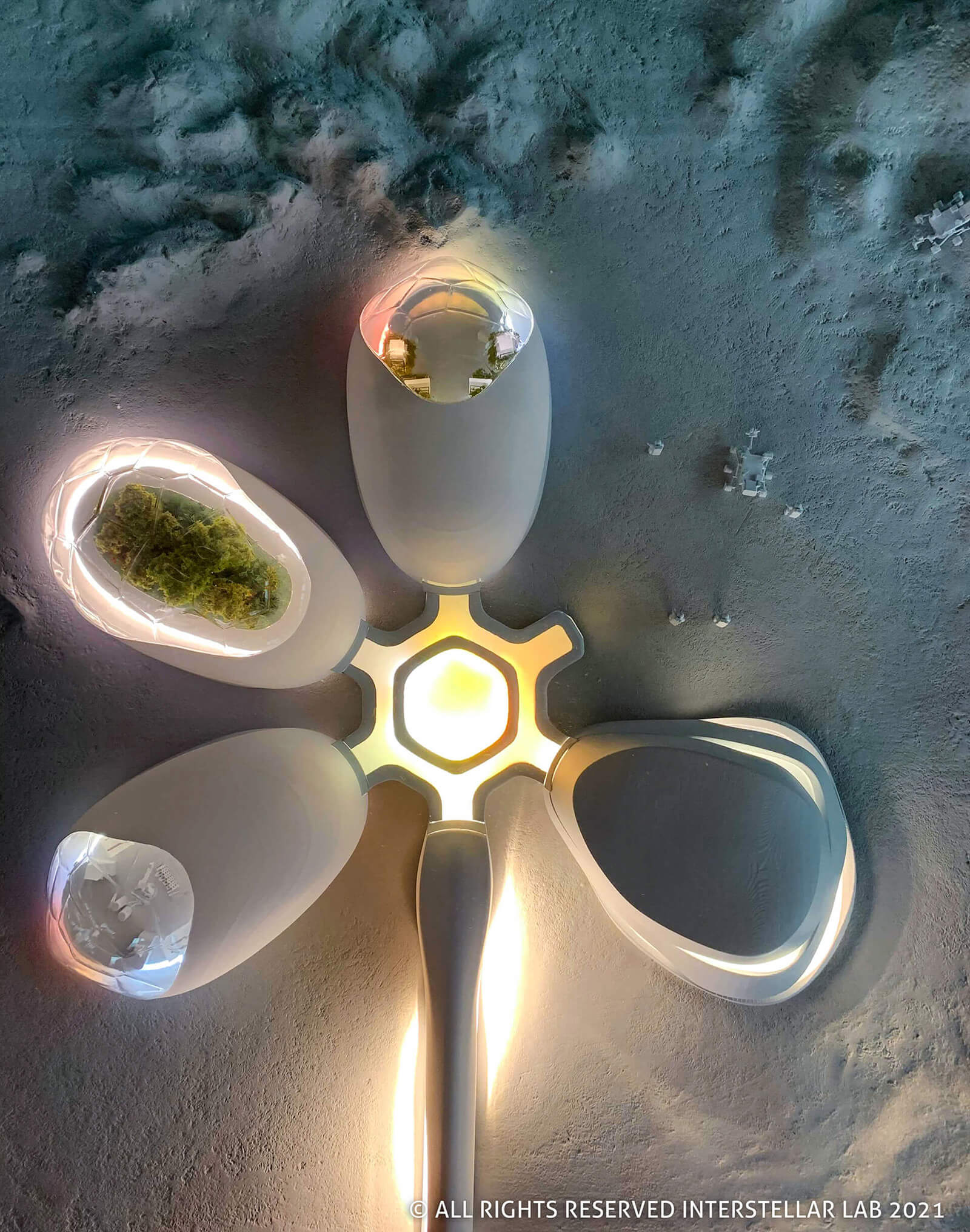 Interstellar Lab’s BioPod is a modular, deployable plant cultivation pod whose inflatable and resilient design combines advanced agricultural technology along with predictive monitoring capabilities and environmental control systems to grow a wide variety of crops that would not survive in the conditions created by conventional indoor farming models. The project is one among numerous pods that integrate to form the EBIOS (Experimental BIOregenerative Stations) module developed by Interstellar Lab in 2019. BioPod is said to be capable of functioning both in this arrangement and as a standalone system, to provide solutions for local, regenerative and efficient agriculture while fostering biodiversity, turning carbon dioxide to oxygen, closing out the water loop, and reducing land requirements significantly for life on Mars, the Moon, and back on Earth. Its design has been geared to be adapted to NASA’s Artemis program, which aims to take humans back to the Moon by 2024.