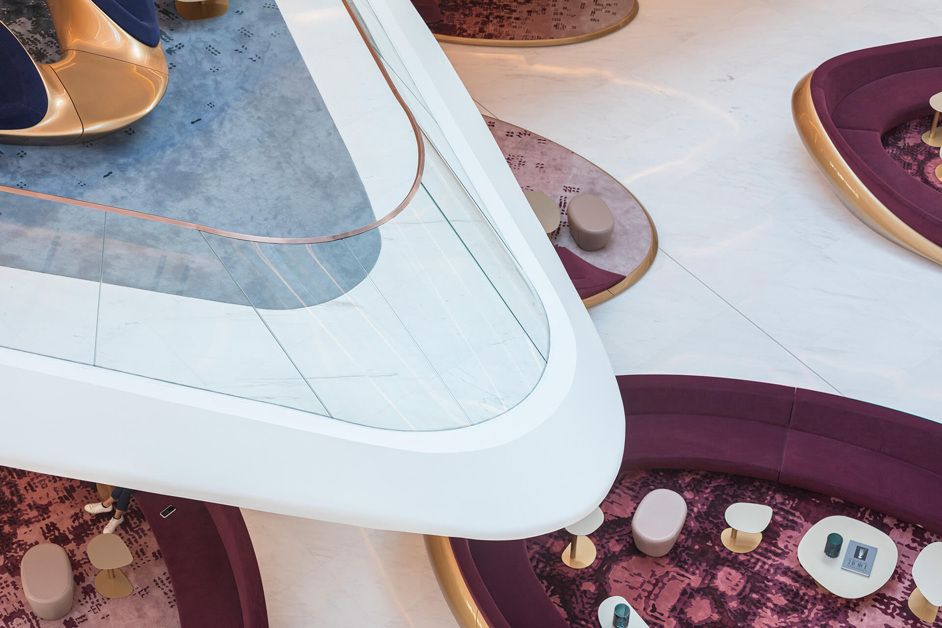 Furniture by Zaha Hadid Design has been installed in the entire hotel. The lobby becomes a huge resembling point of departure and arrival into what signifies as Zaha Hadid’s predominant design and architectural free flowing style. “The precise orthogonal geometries of the Opus’ elemental glass cube contrast dramatically with the fluidity of the eight-storey void at its centre,” explained Christos Passas, project director at Zaha Hadid Architects.