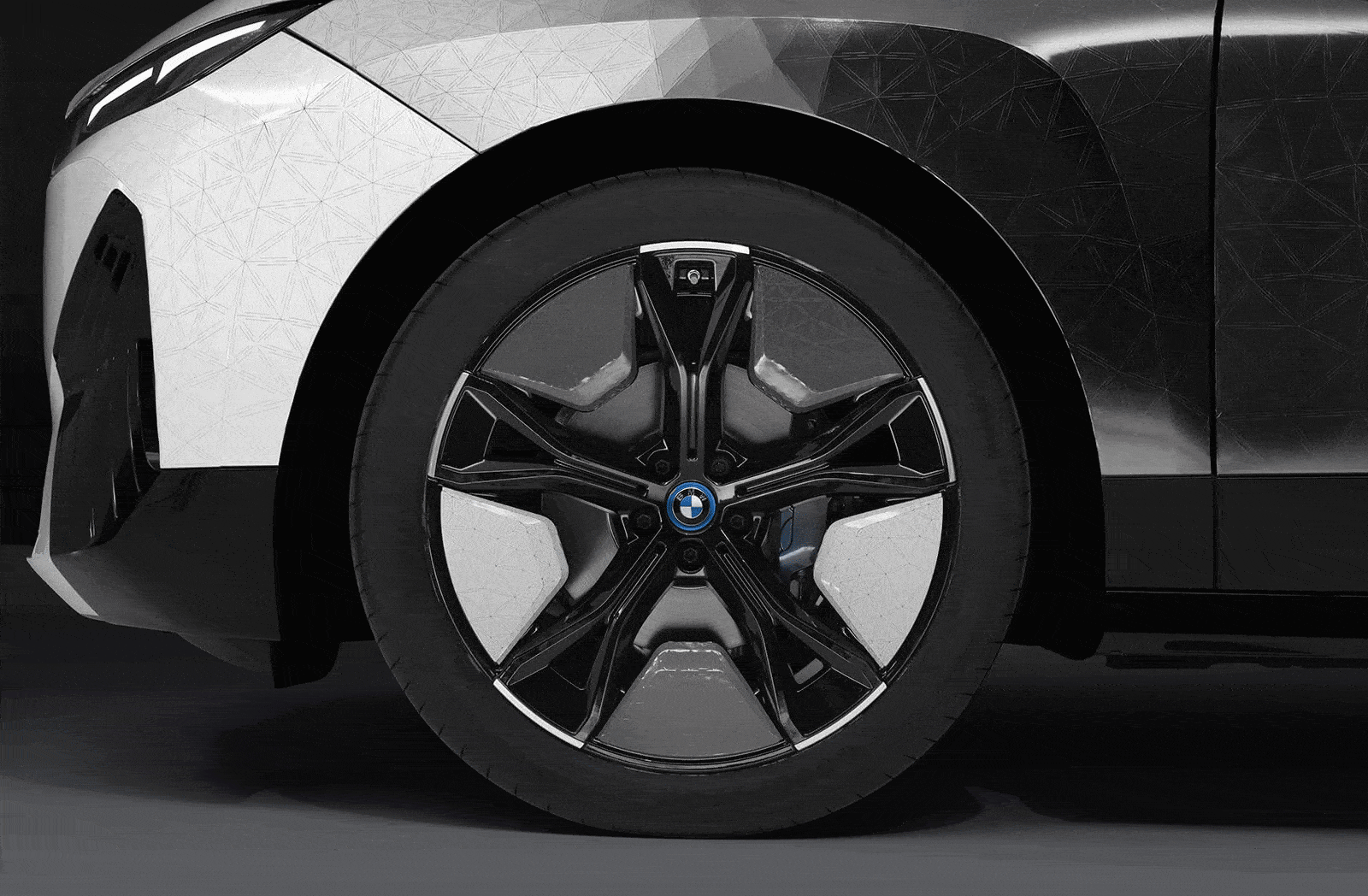 The iX Flow’s chameleon-like nature is the result of a body wrap fitted to its contours. By making use of electrophoretic colouring (developed by E Ink for use in e-reader displays), different colour pigments are brought to the fore of the vehicle’s exterior, in a process that almost mimics iridescence. For this purpose, millions of microcapsules as wide as a human hair have been embedded into the surface coating, with positively charged black pigments and negatively charged white counterparts to implement the chromatic shift. When stimulated by an electric field, the surface of each microcapsule is flooded by one of the pigments as per the given setting, to impart colour to the body - much like an electronic paper display (EPD).