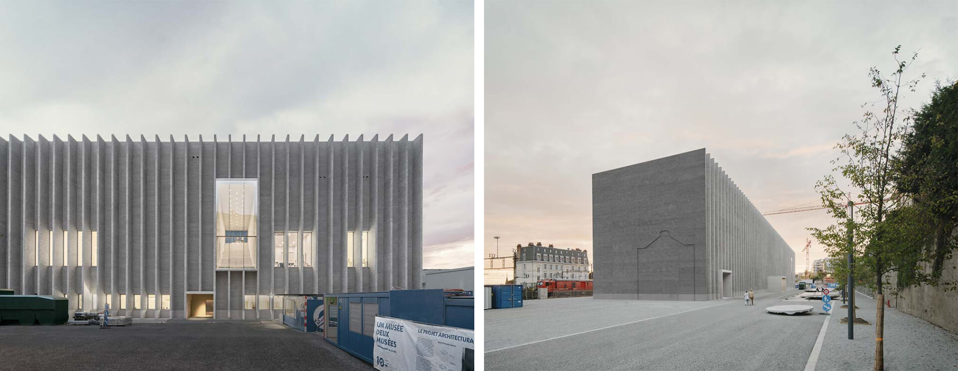 Spanish architecture firm Barozzi Veiga aimed to transform a complex urban setting facing the rail yards of Lausanne, Switzerland, into a new arts district, centered on three museums. The first of these buildings is a monolithic grey volume featuring rhythmic louvred projections on its facade. Built on the site of a former 19th century structure, it pays tribute to the neighbourhood's industrial past by incorporating pre-existing elements such as the large arched window. Inside, the Barcelona-based practice created hermetic and austere spaces filled with light that enhance the design’s near-monochrome aesthetic and strong geometric sensibility.