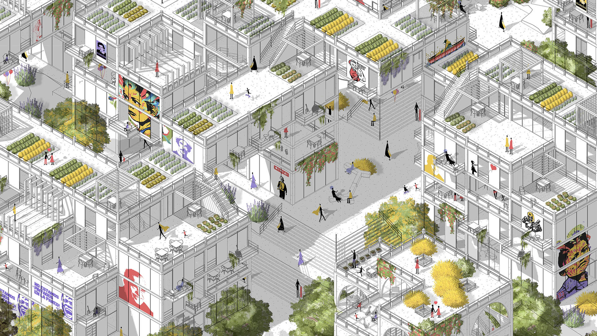 This experimental transdisciplinary project spans multiple dimensions of urban housing solutions for socially vulnerable residents in the Bolonia and Usme neighbourhoods of Bogota, Colombia. Based on an in-depth study of these urban locales over three years, combined with Complexity Theory, HAMBO devises methods to fund a resilient, complex, mixed-use social housing solution through participatory design, flexibility, and informal spatial strategies. It also challenges the country's current social-housing monetary-cap policies with a complex alternative strategy.
