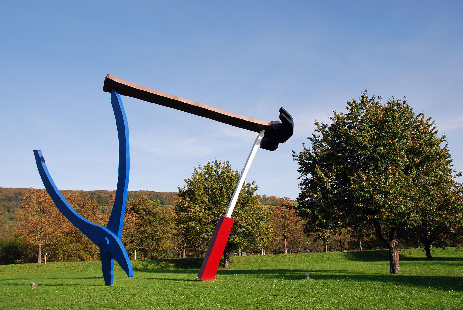 “I am for an art that embroils itself with the everyday crap and still comes out on top,” in a manifesto-like piece published in 1961, Oldenburg wrote. “I am for an art that imitates the human, that is comic, if necessary, or violent, or whatever is necessary. I am for an art that takes its form from the lines of life itself, that twists and extends and accumulates and spits and rips, and is heavy and coarse and blunt and sweet and stupid as life itself.”