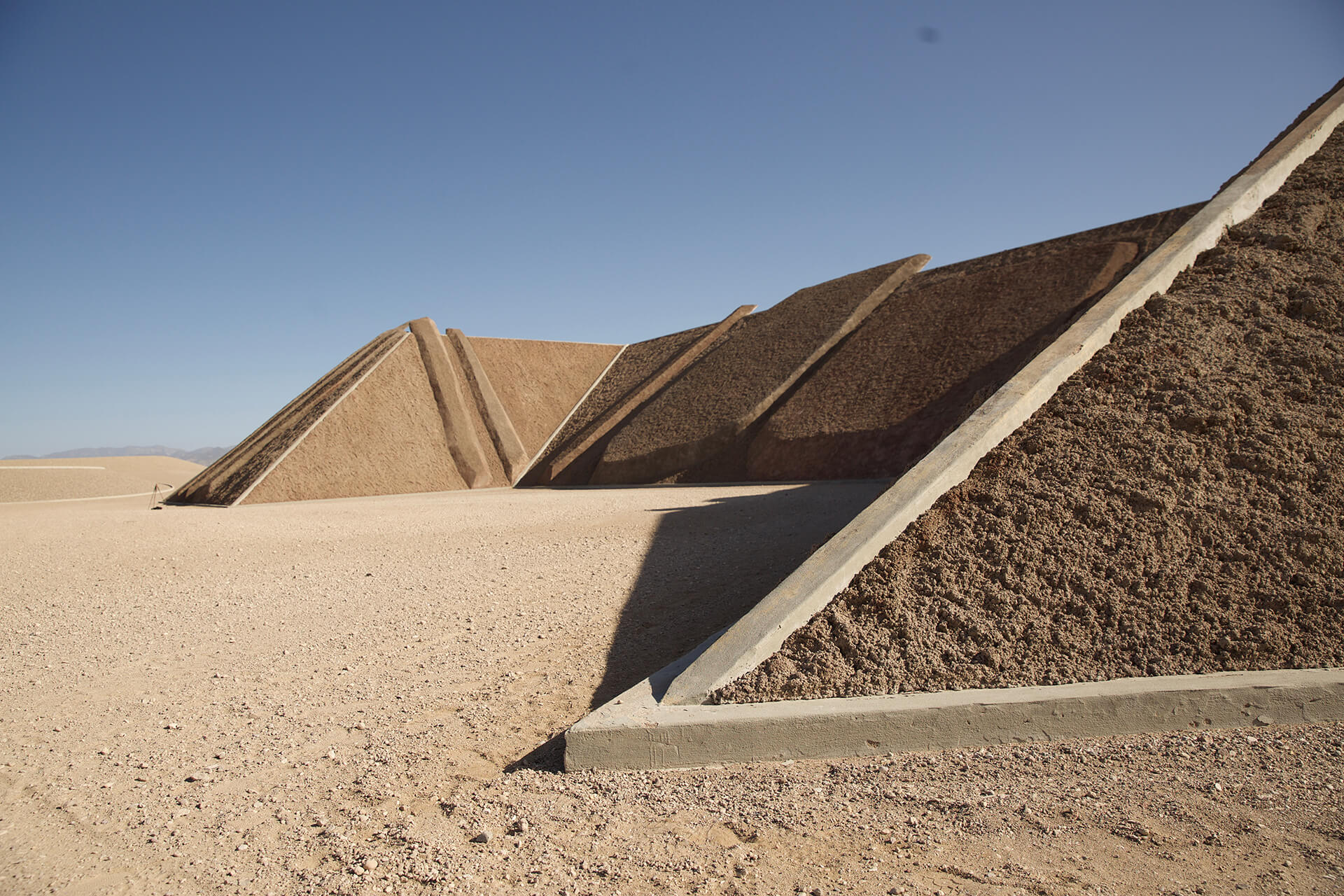 It is important to create a distinction here, that while the artwork is called City, at no point is it meant actually to be one. Rather the sculpture is meant to indicate the very lack of a city in the middle of a desert. Perhaps a clue to better understand this lies in one of Heizer's earlier works, titled the Double Negative. Completed in 1969, the sculpture consists of two trenches on either side of a natural canyon. In this particular work, Heizer excavated over 244,000 tons of rock to create these two negative spaces, hence the name. The geometric extraction has an architectural quality to them, as an aspect that continues to be a part of Heizer’s work. With both works, the common trend—other than scale—is the reference to what is not there. It is either an empty oasis or a corporeal mirage.